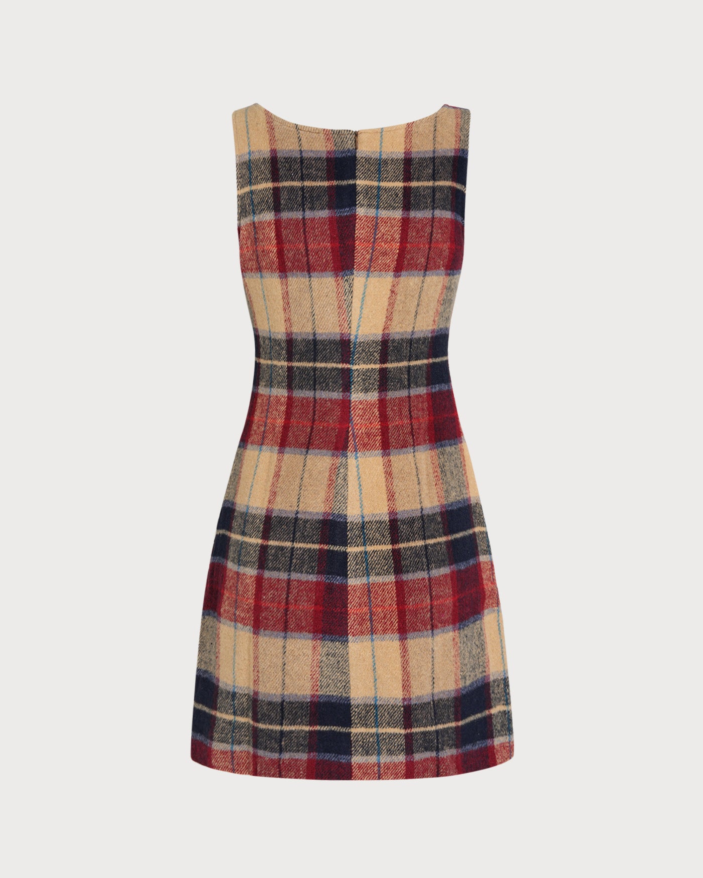 Red U Neck Plaid Mini Dress