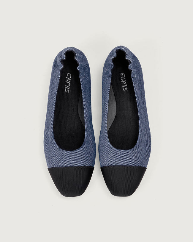 Enfiis Blue Twill Denim Square Toe Ballet Flats