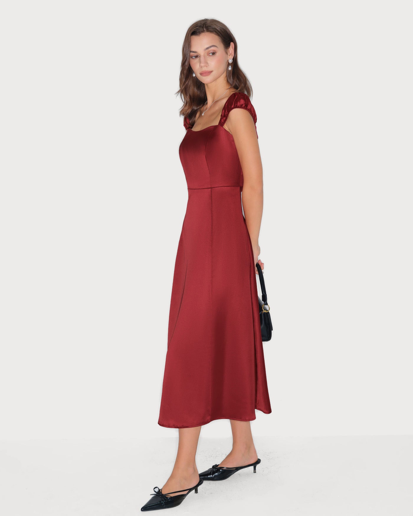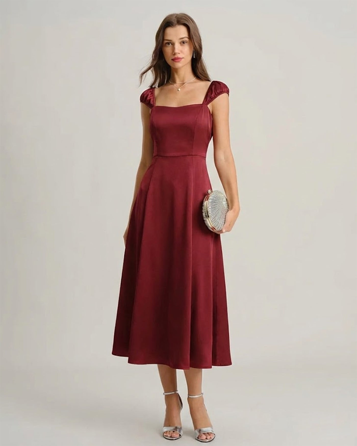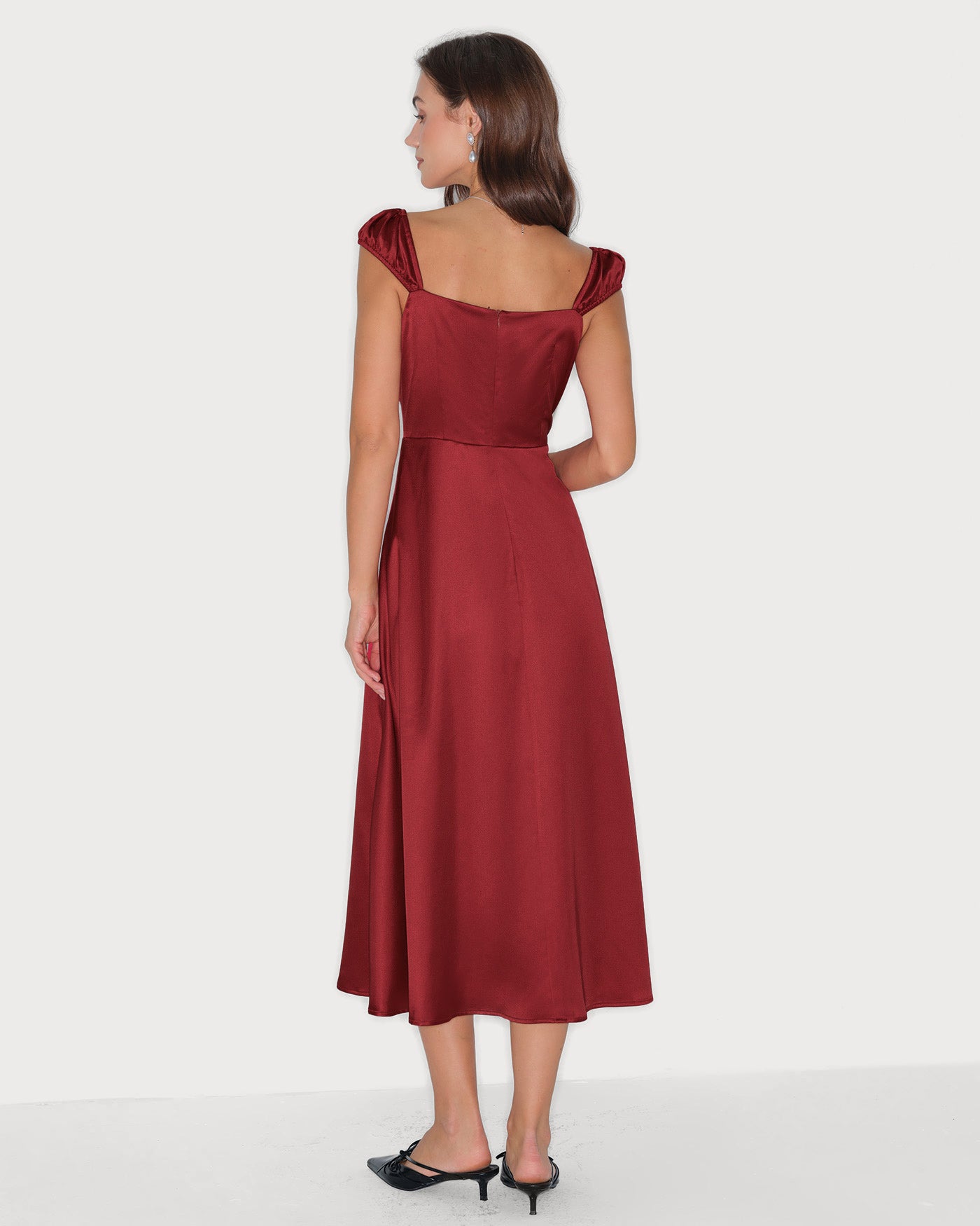 Red Sweetheart Neck Satin Midi Dress