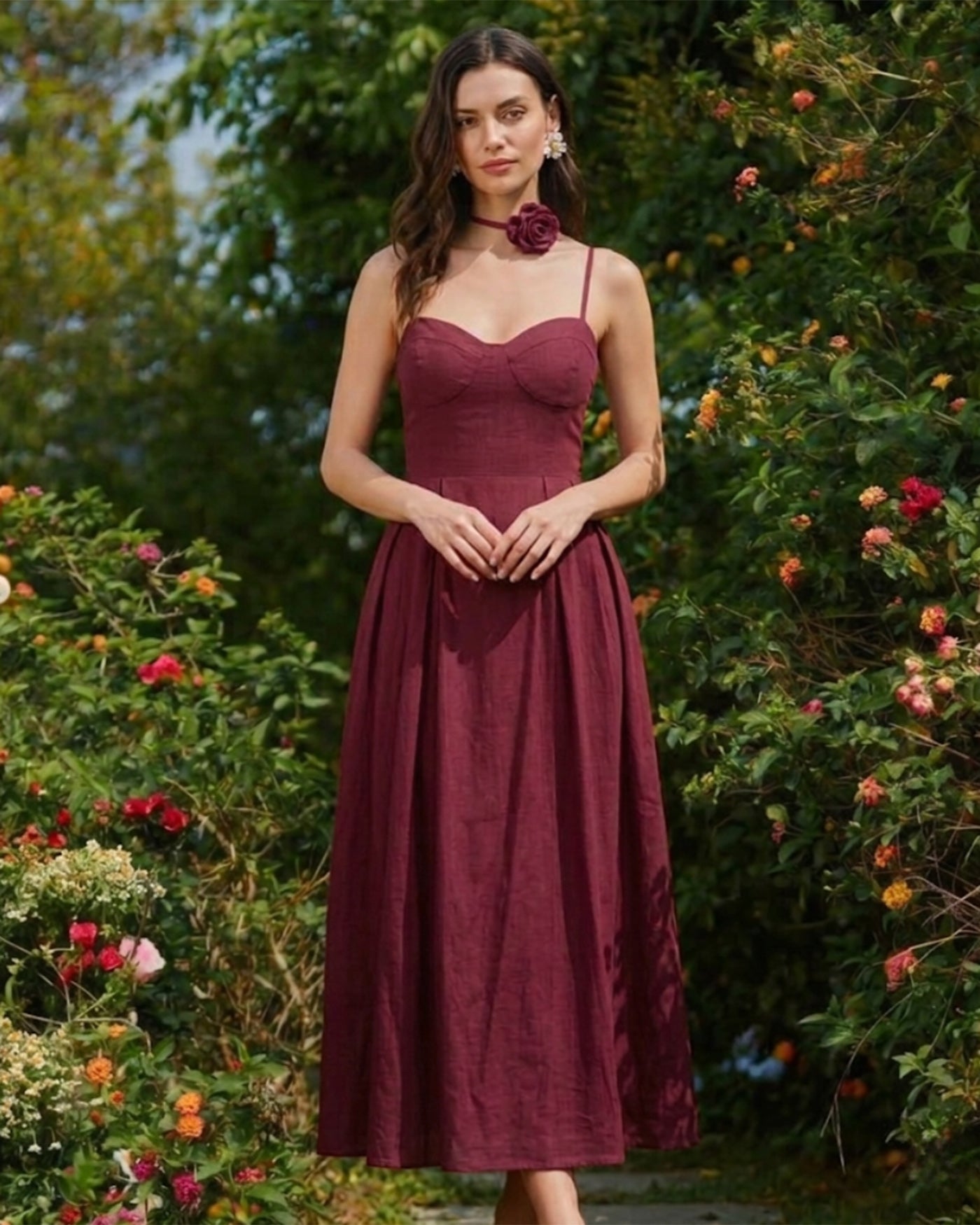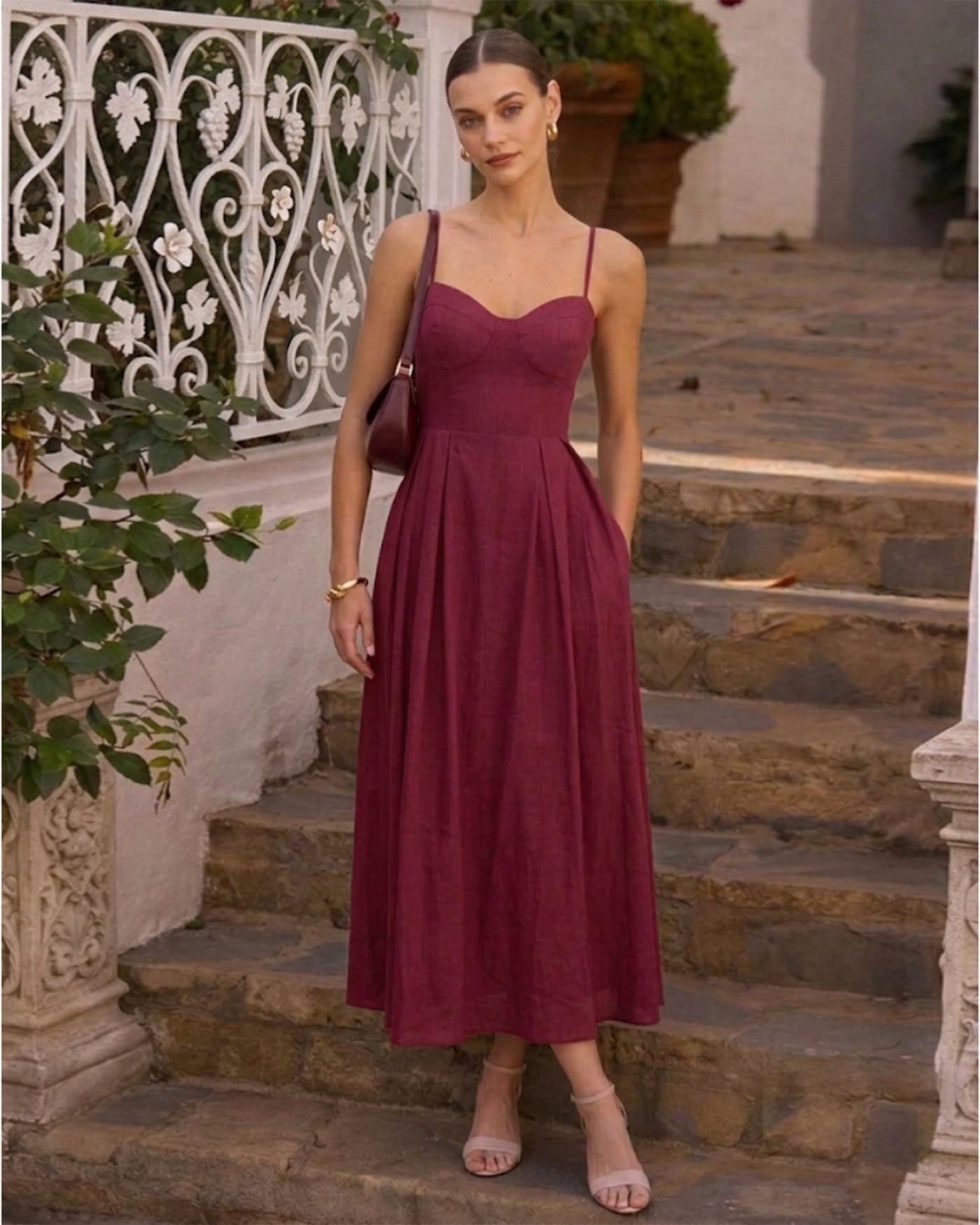 While the non-stretch fabric ensures a structured, high-quality drape, the bodice features a shirred back panel (smocked elastic) that adapts to your shape for a customized, snug fit. The skirt flows into a breezy A-line silhouette, making it an effortless choice for daily wear, beach vacations, or sunset dinners. Finished with a feminine tie detail, this red maxi pairs perfectly with strappy sandals for a look that is equal parts sexy and sweet.