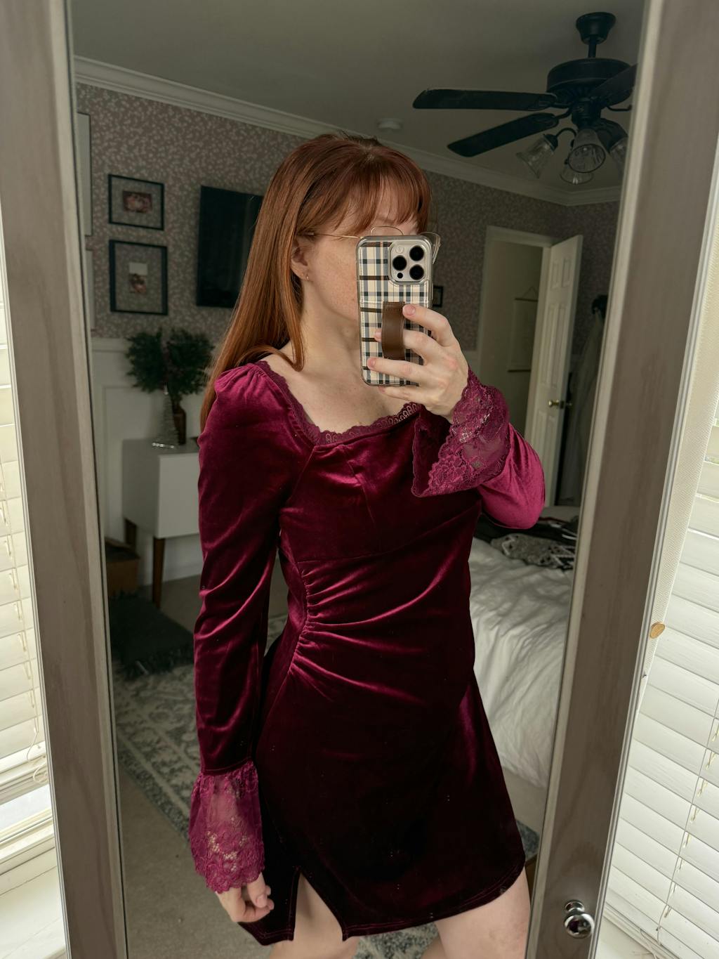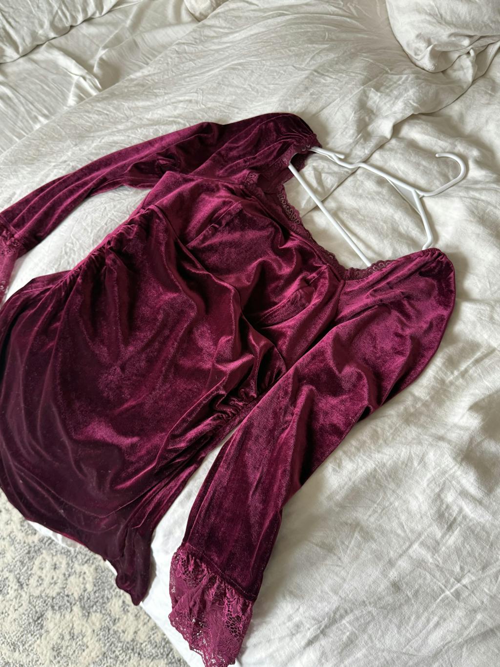 I can't get enough of this dress! The velour fabric feels so plush, and the square neckline is flattering and unique. The wine red shade is deep and rich, making it perfect for the colder months.