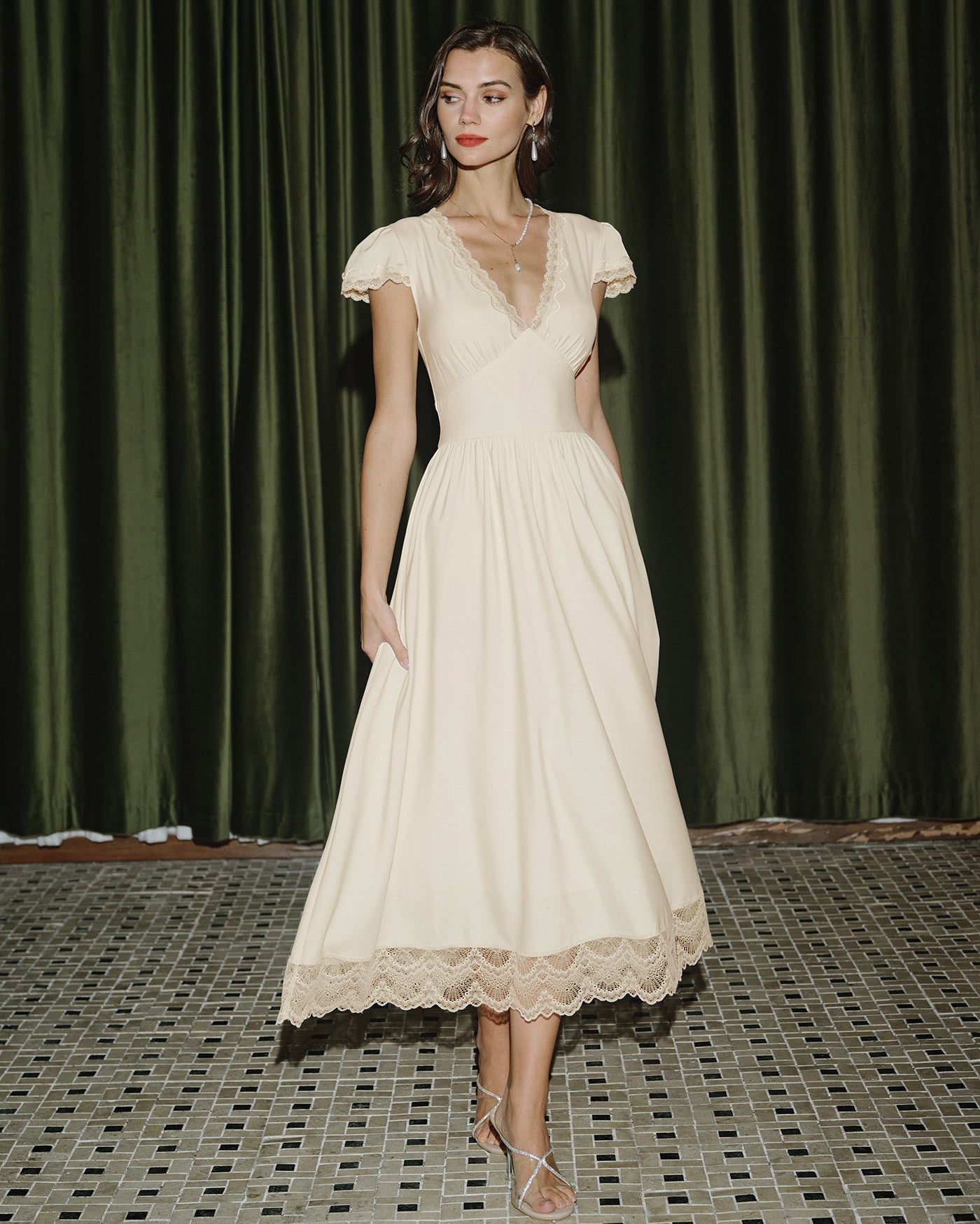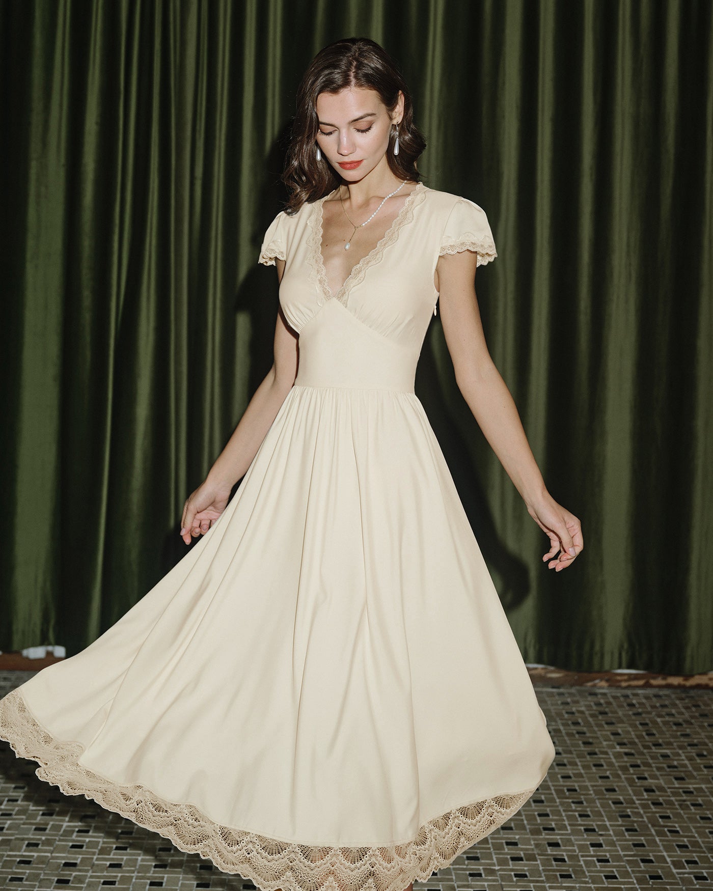 I’m in love with this dress! The V-neck and delicate lace design feel so romantic and elegant. The fabric is soft and breathable, and it drapes beautifully — I felt comfortable all day.