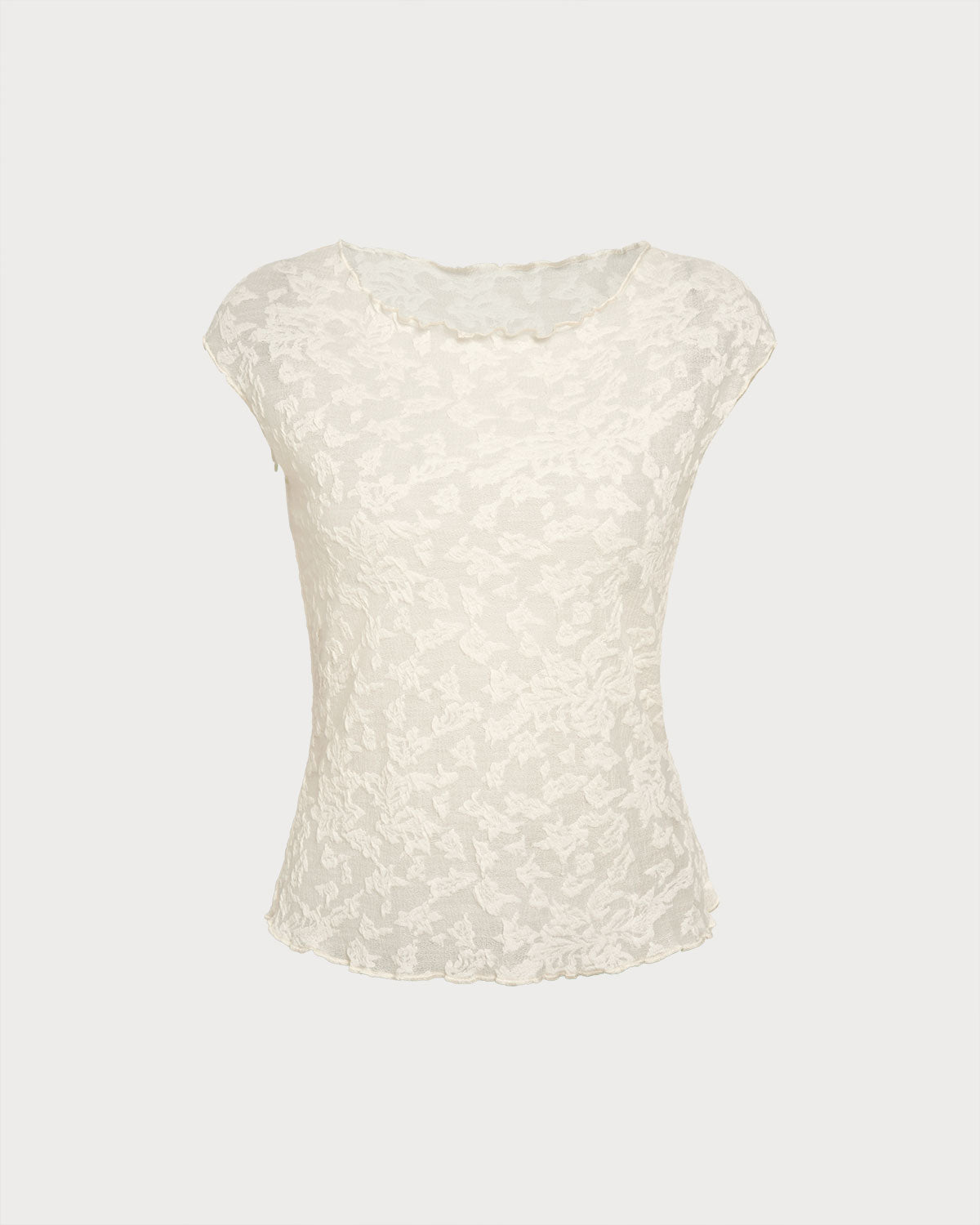 Beigefarbenes, strukturiertes, durchsichtiges T-Shirt