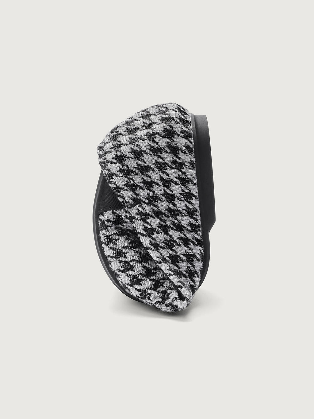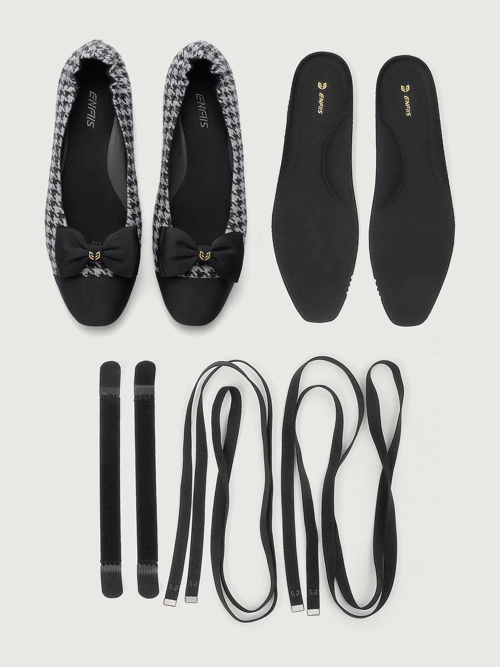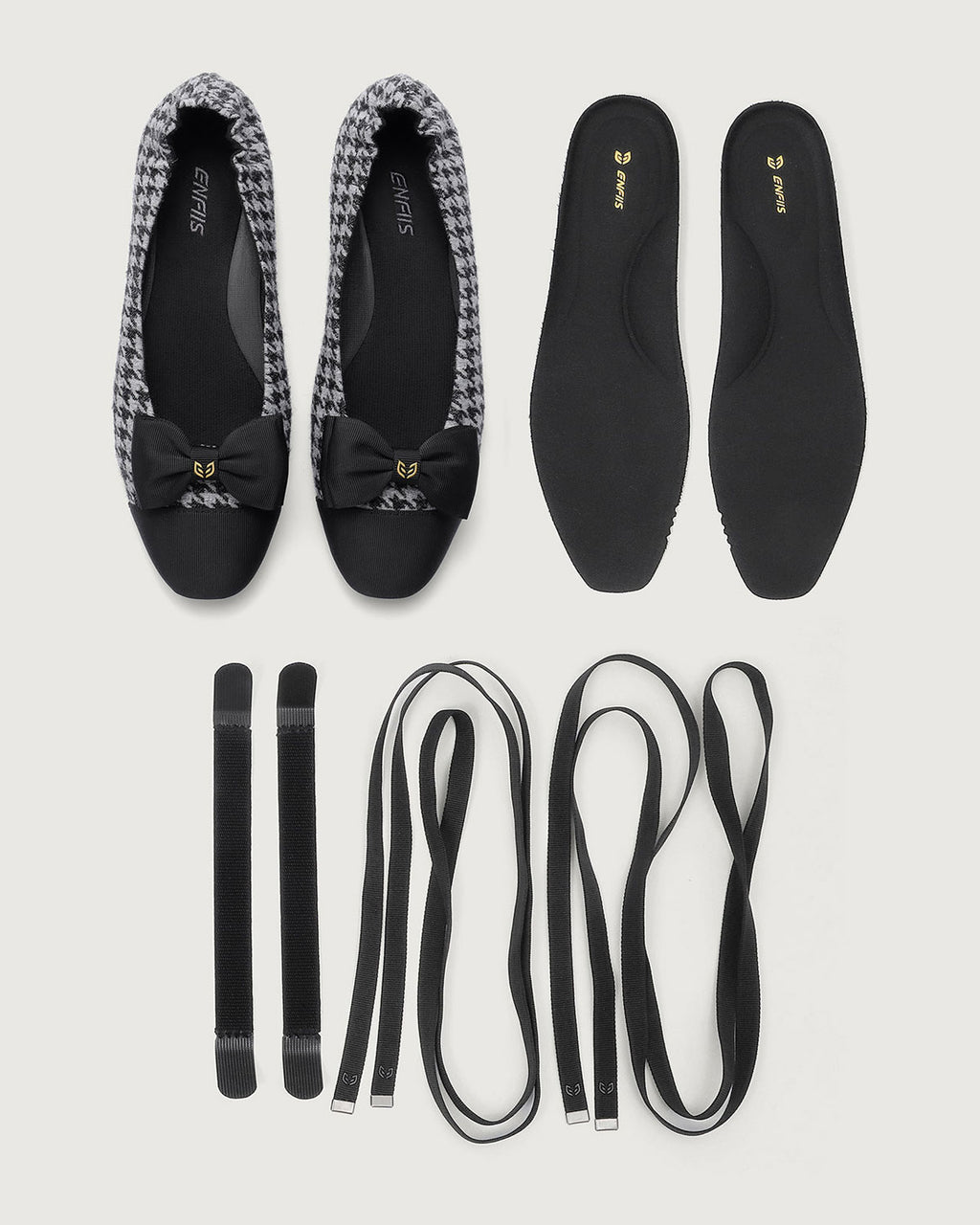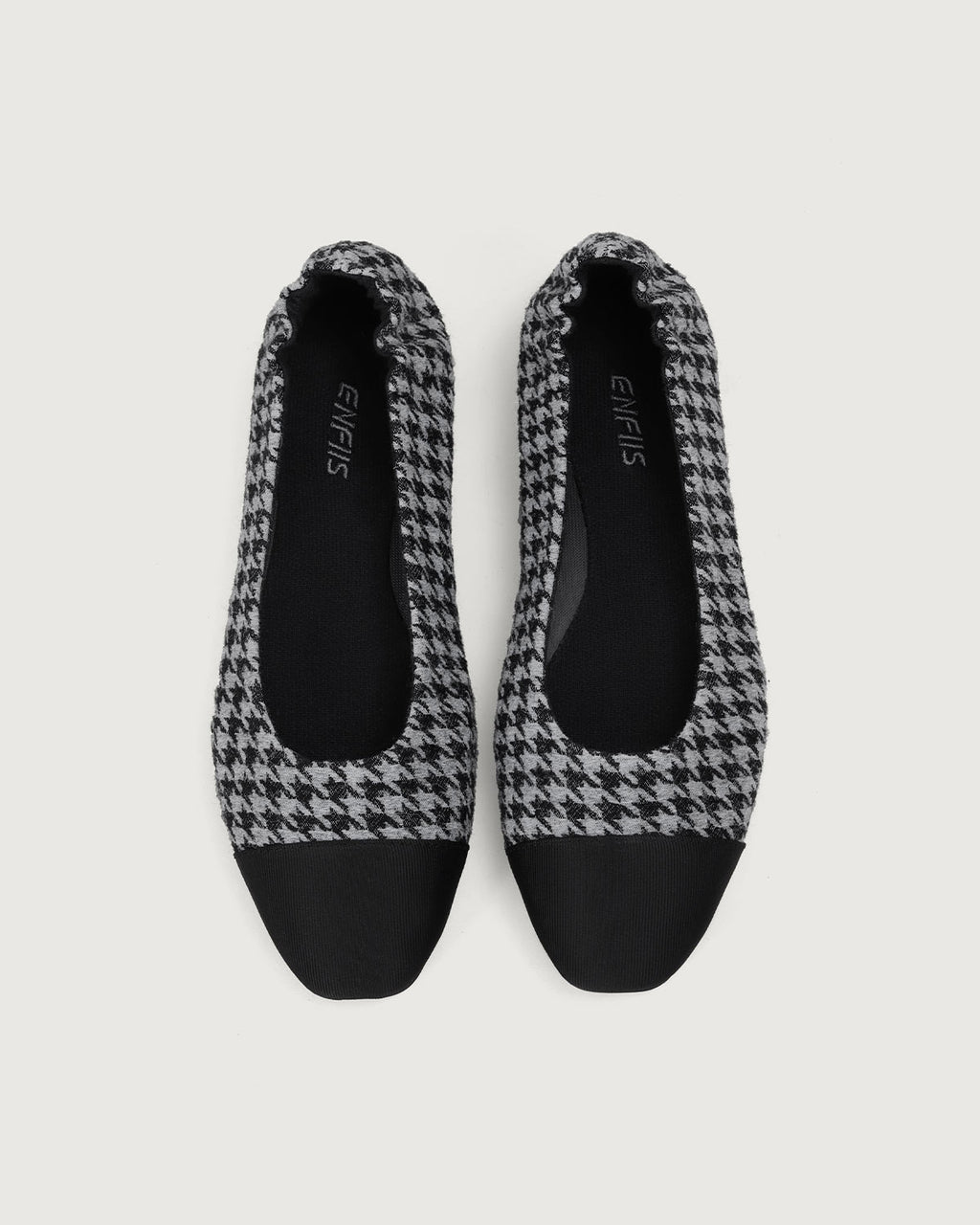 Enfiis – Schwarze und graue Jacquard-Ballerinas mit Hahnentrittmuster und quadratischer Zehenpartie