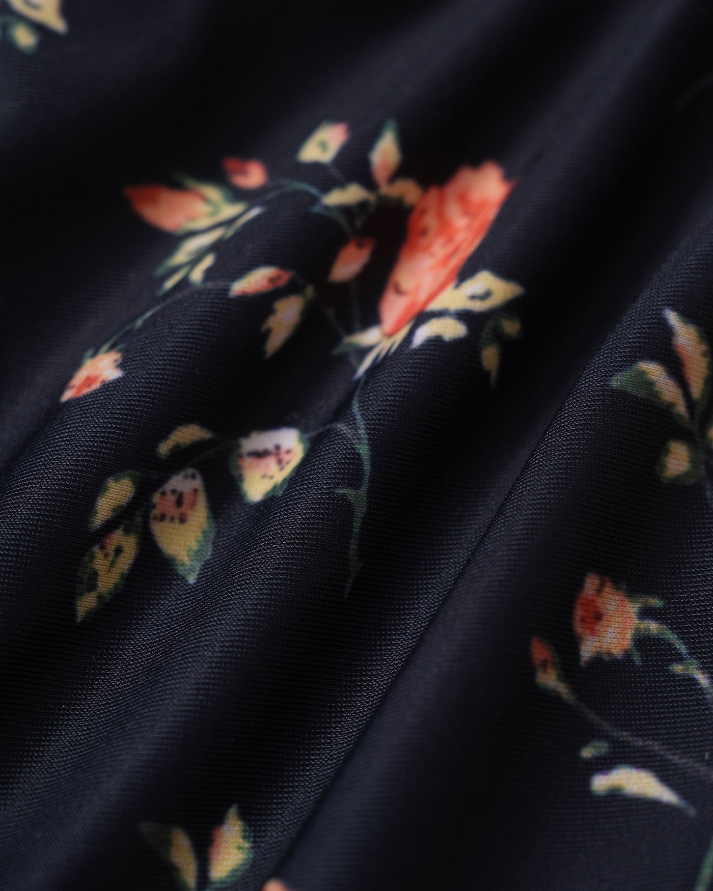 Schwarzes Bikini-Set mit Blumenmuster und Bügeln