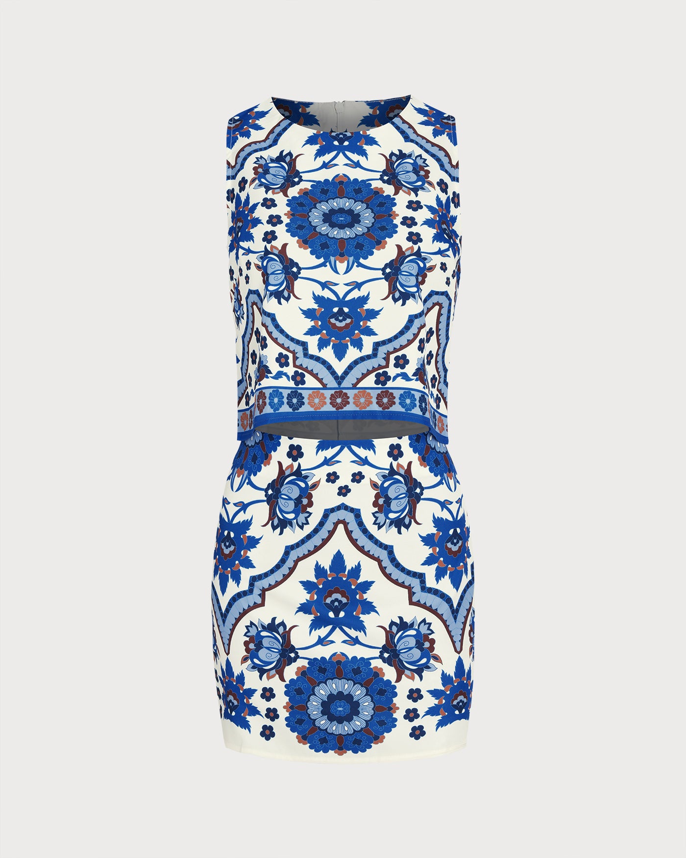 Blue Floral Two-Piece Skirt Set