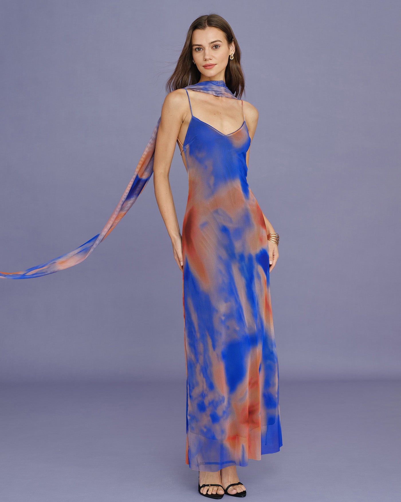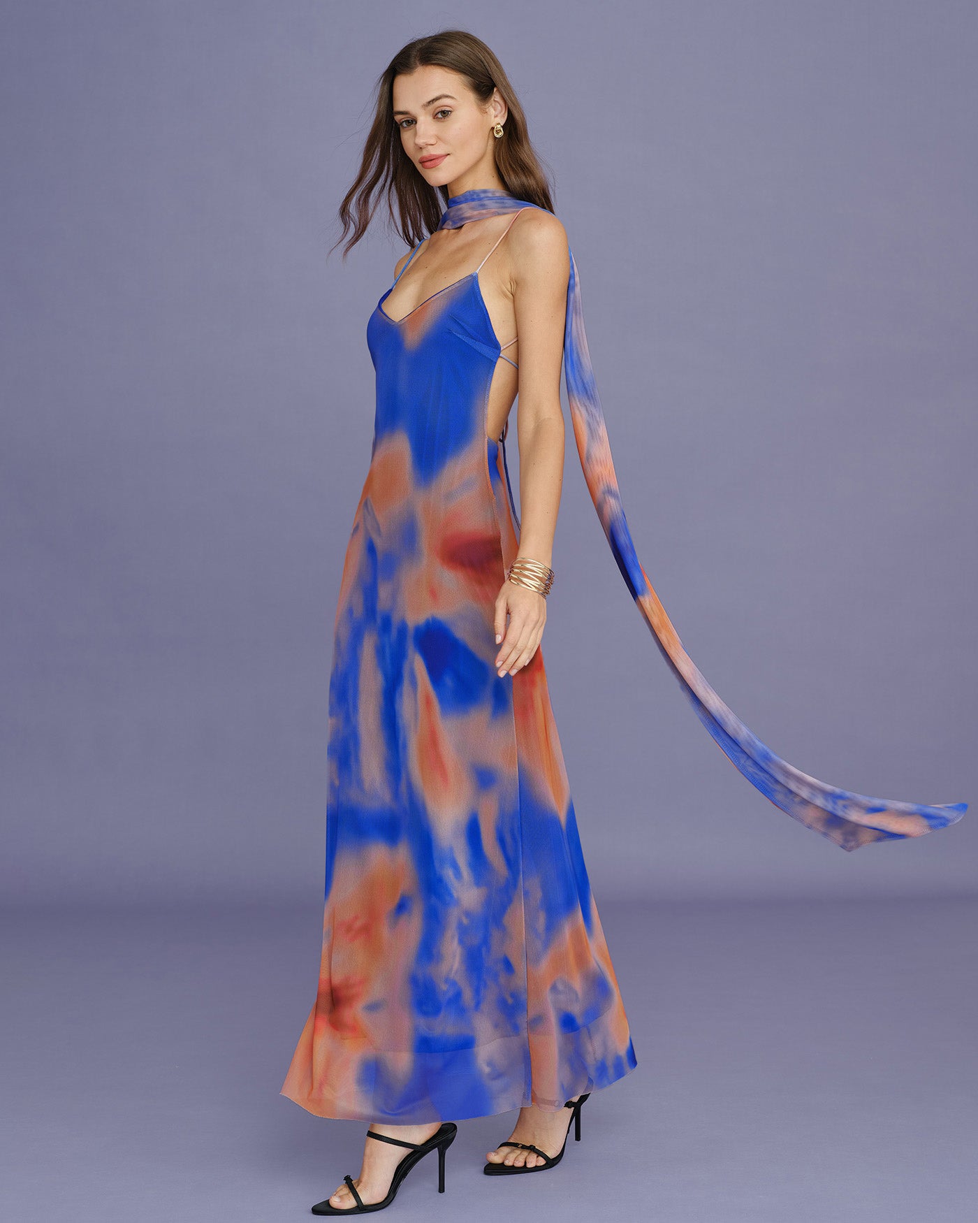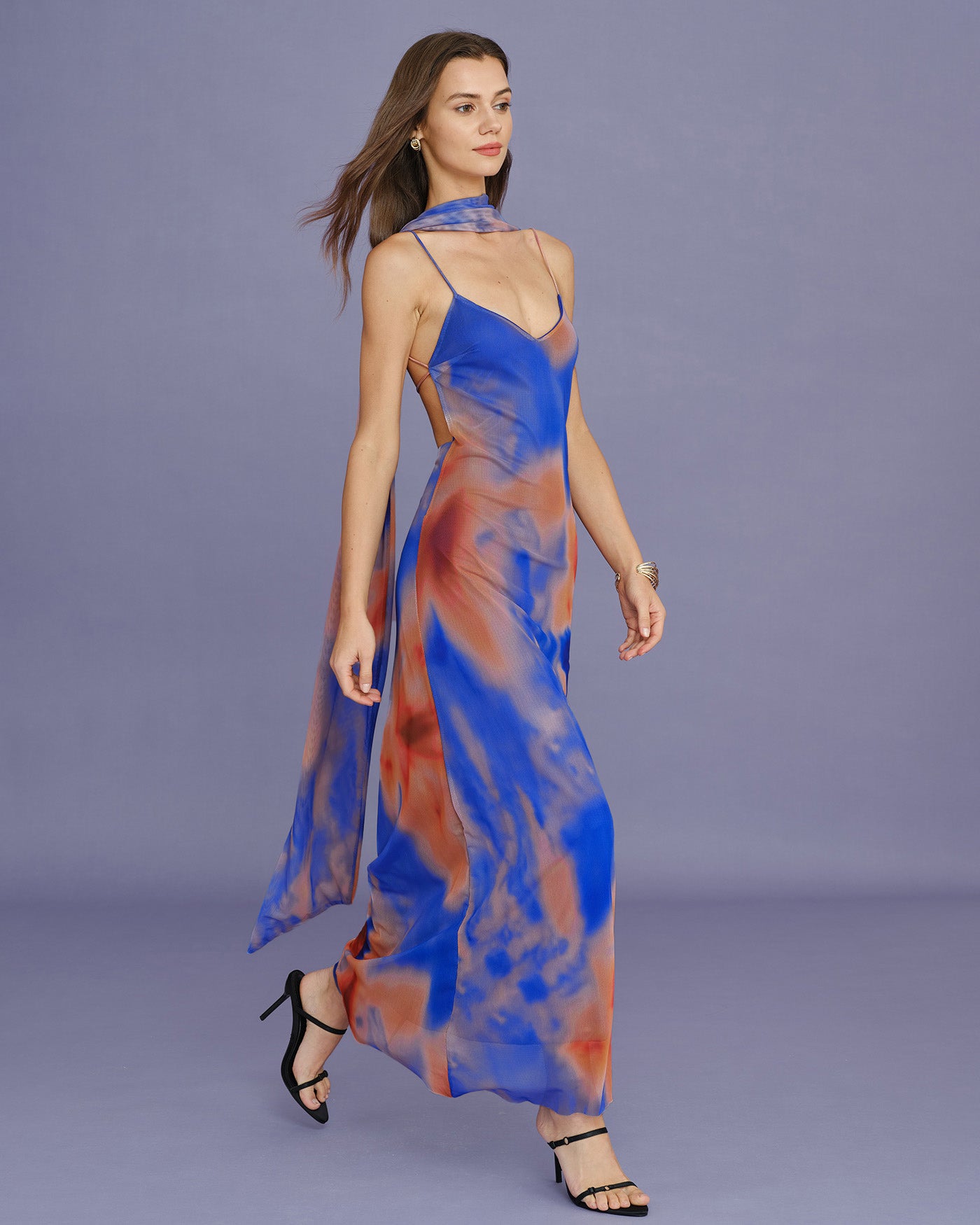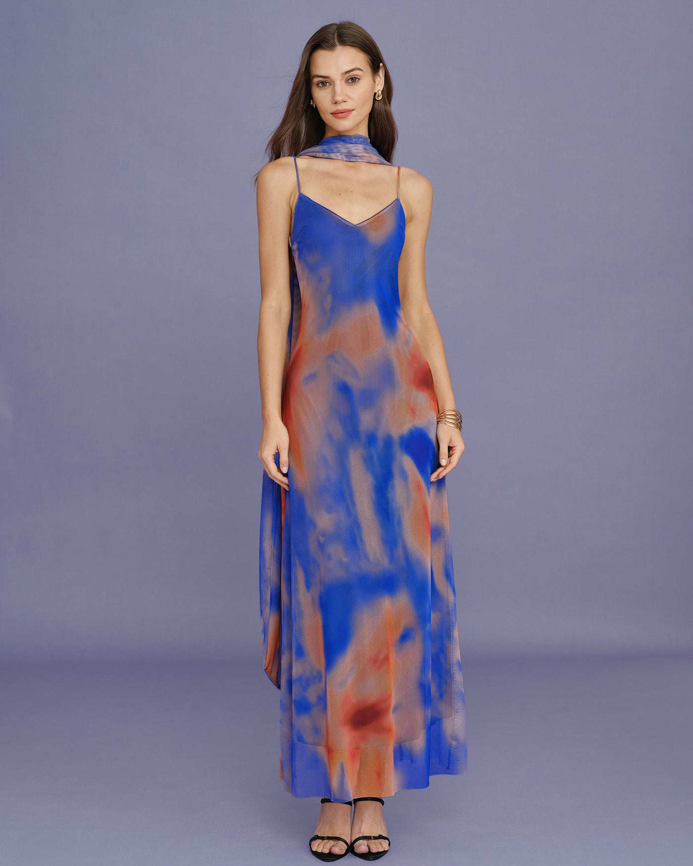 Blue Geometric Slip Maxi Dress