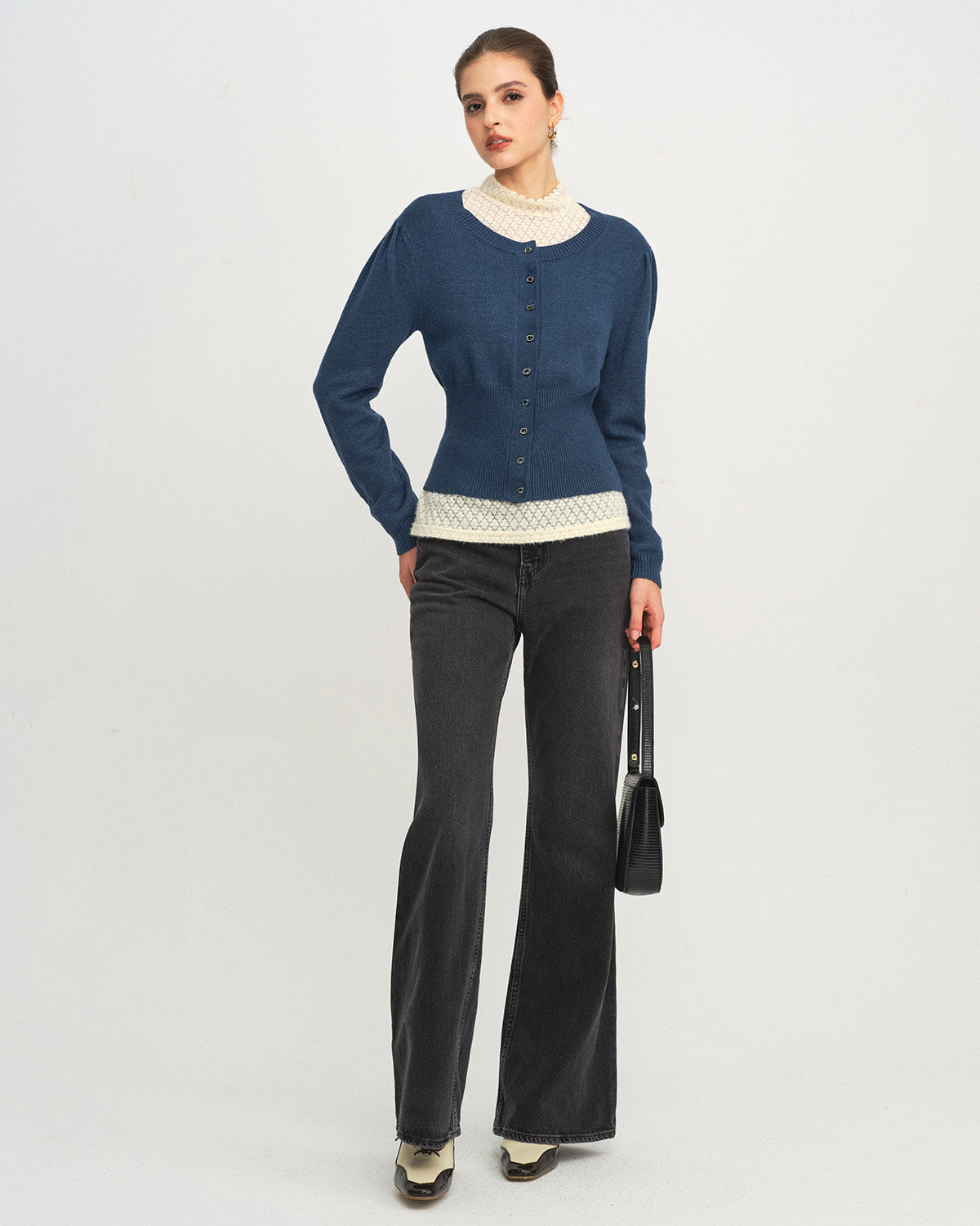 Blue Round Neck Slim Knit Cardigan