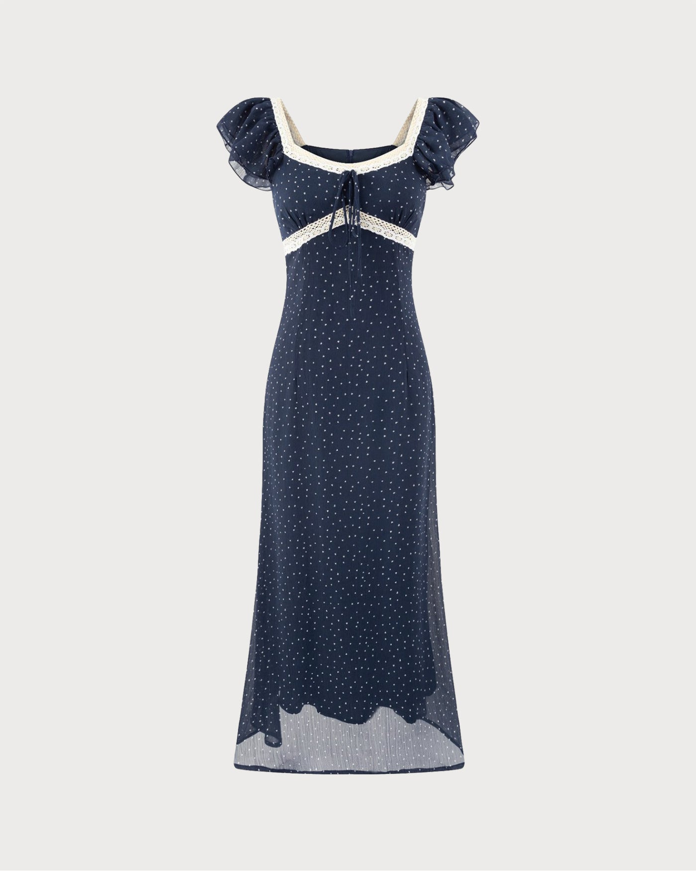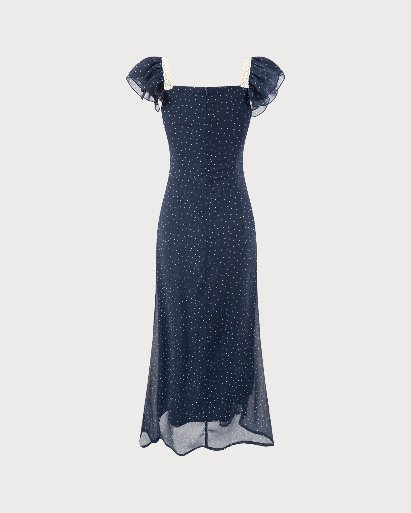 Blue Square Neck Polka Dot Midi Dress