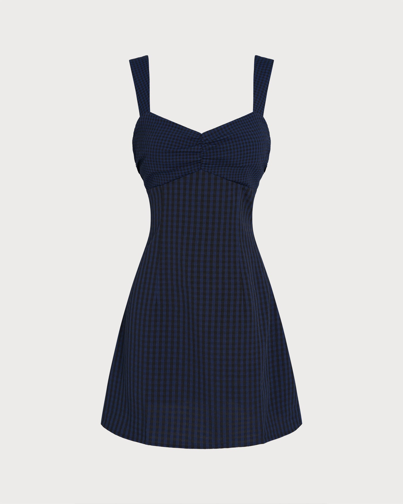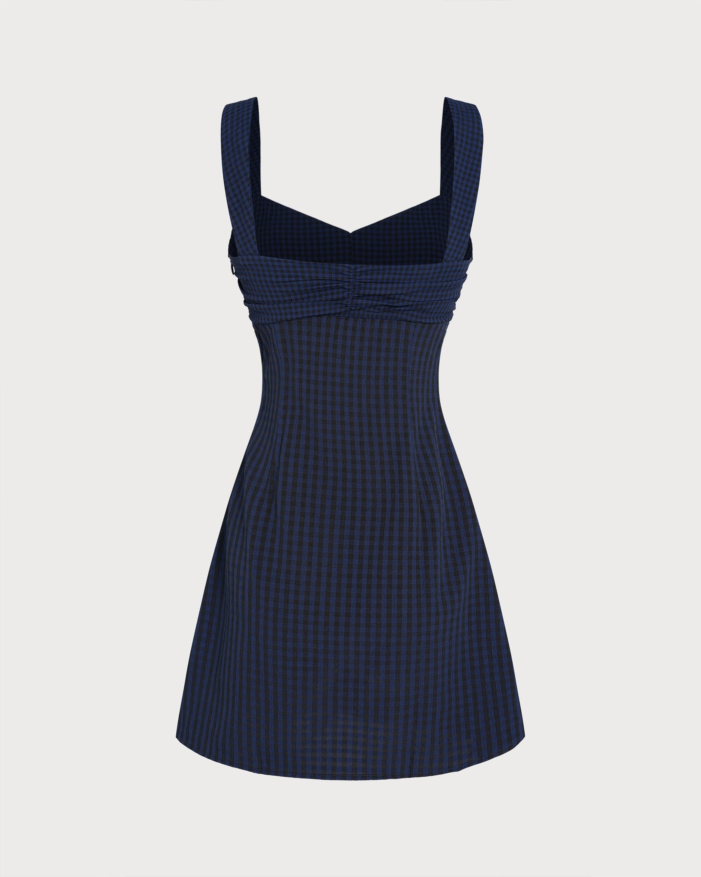 Blue Sweetheart Neck Plaid Mini Dress