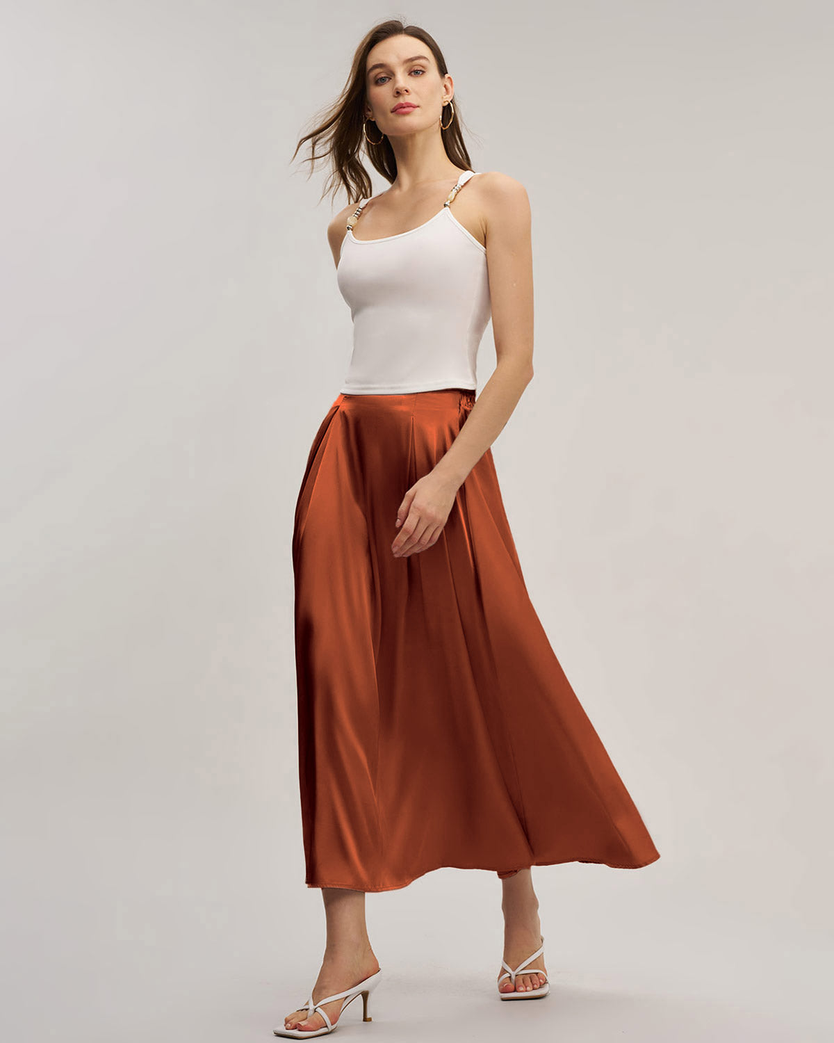 Brick Red Satin Midi Skirt
