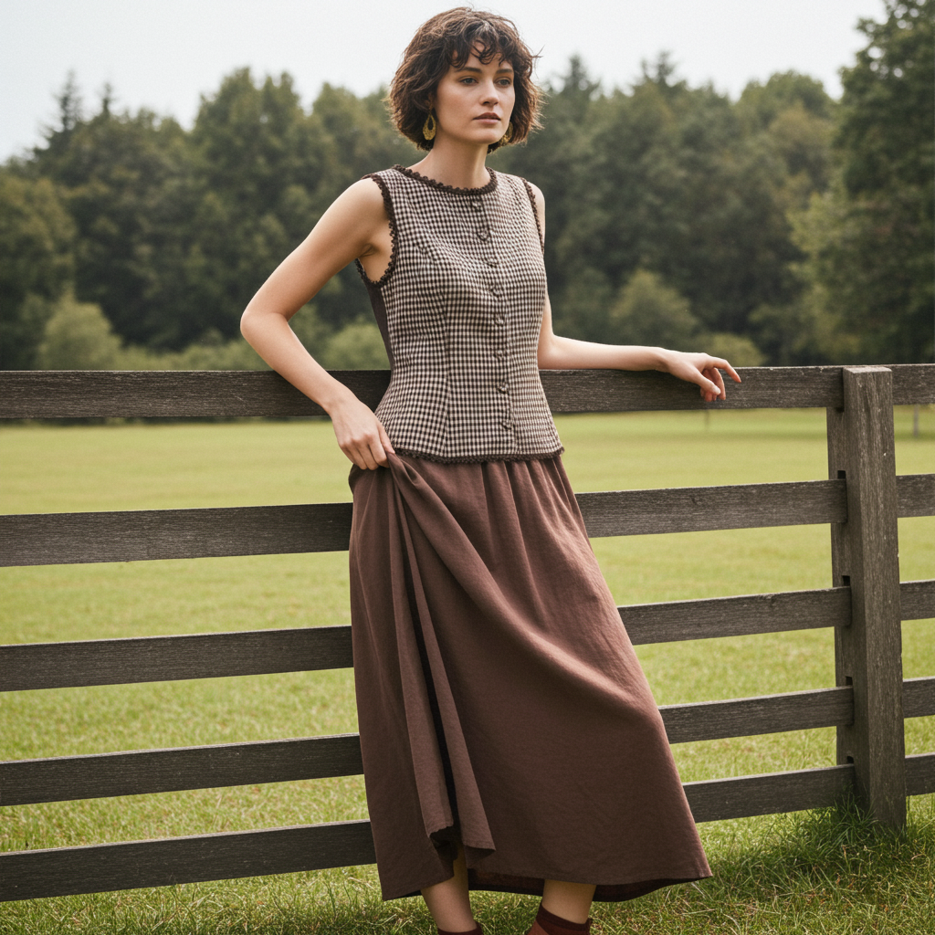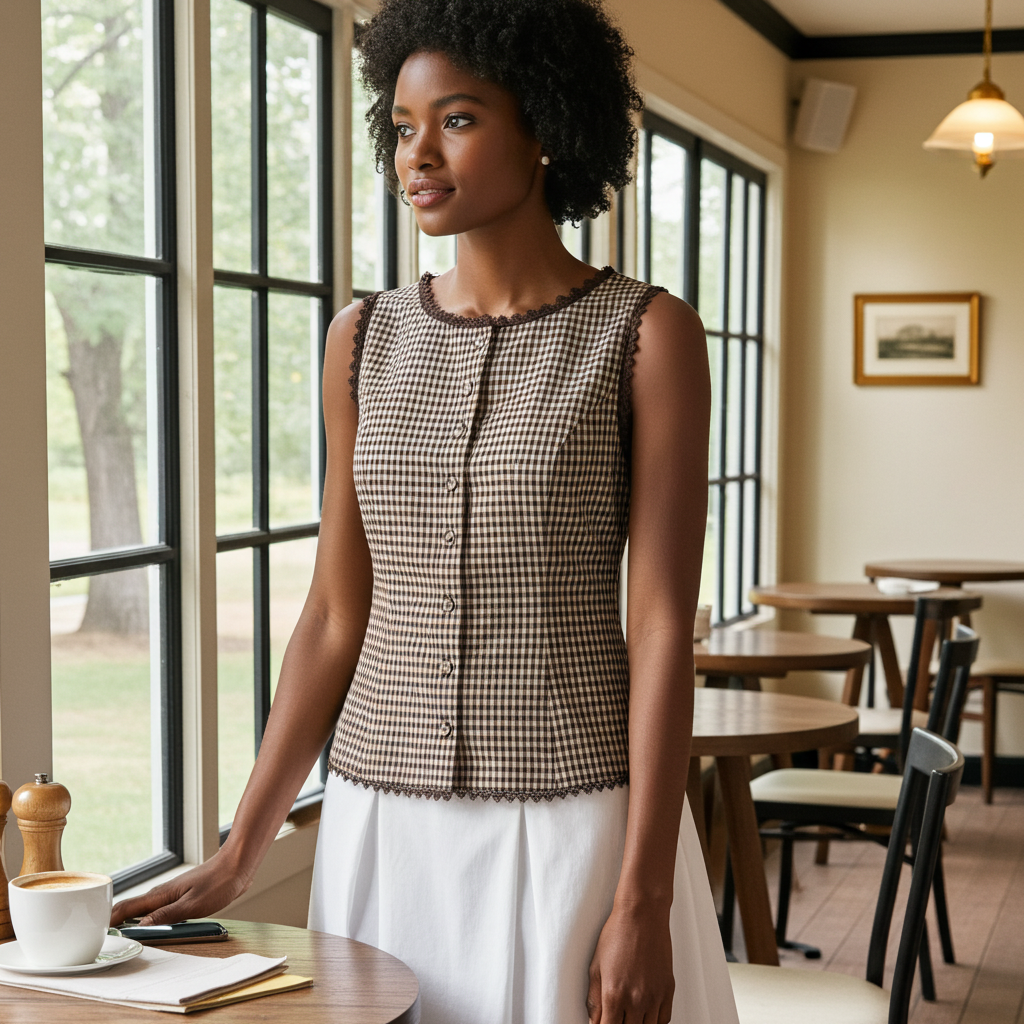Es ist ein zeitloses Kleidungsstück, das jedem Outfit einen Hauch klassischer Eleganz verleiht. Mit ihrem braunen Karomuster und dem einreihigen Design ist diese Weste ein vielseitiges Kleidungsstück, das sich sowohl für formelle als auch für legere Anlässe eignet.