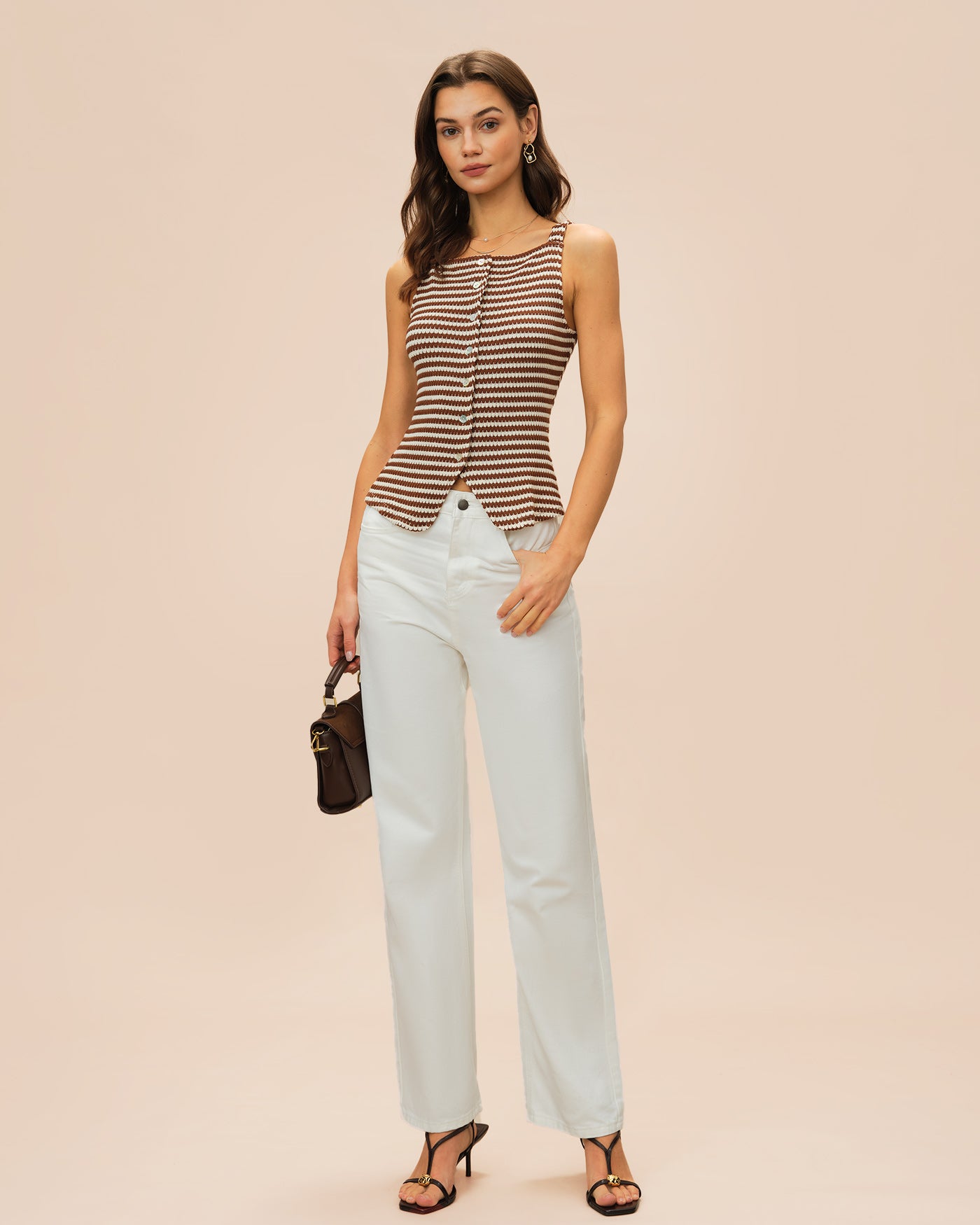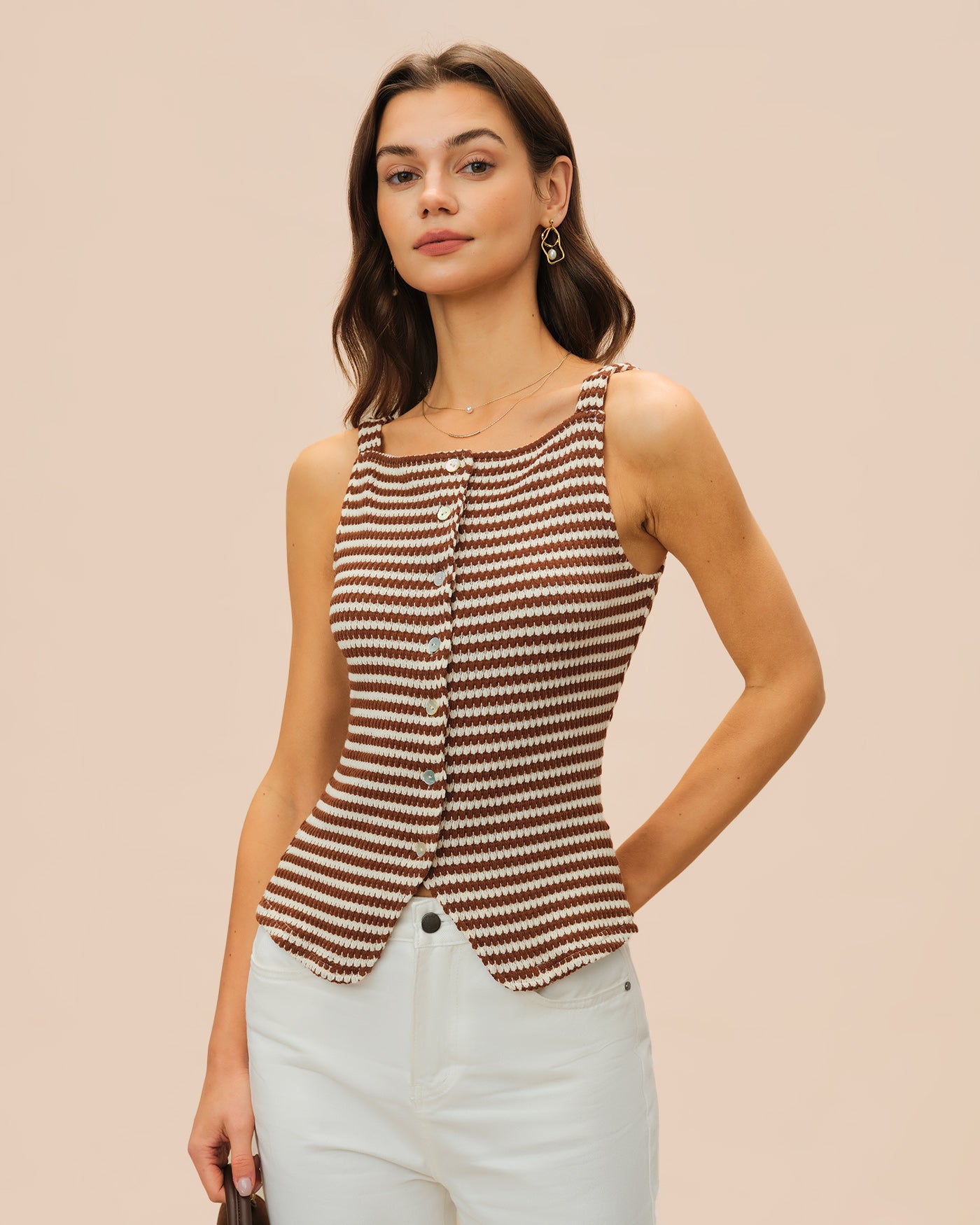 Brown Square Neck Tank Top