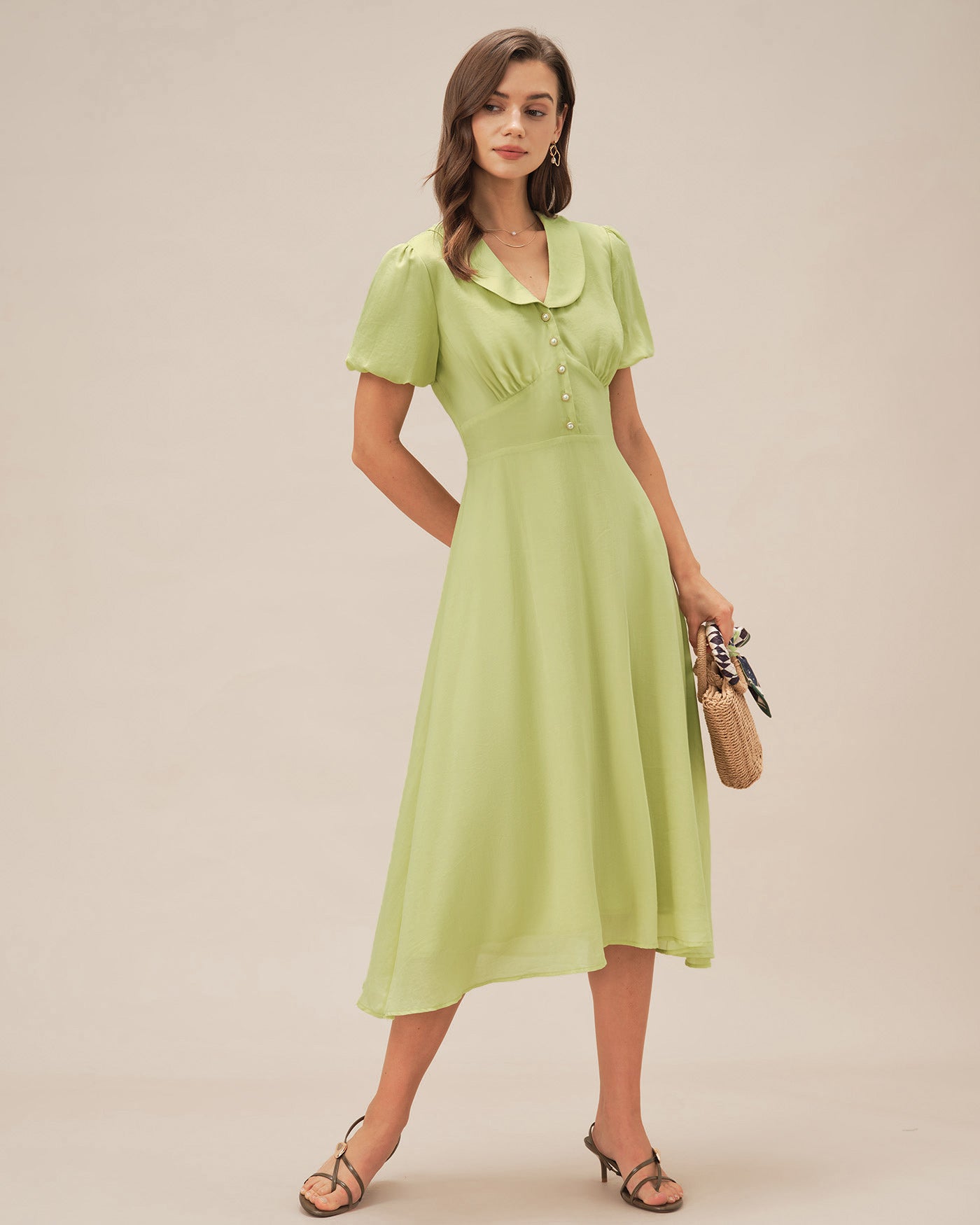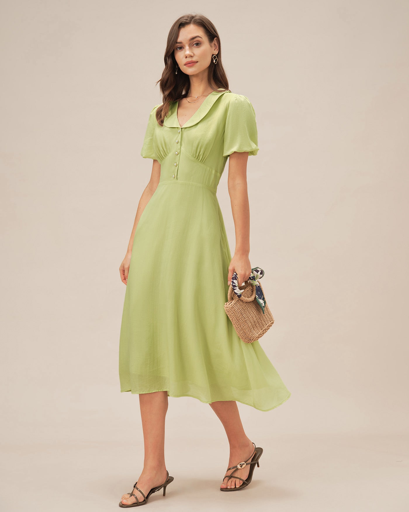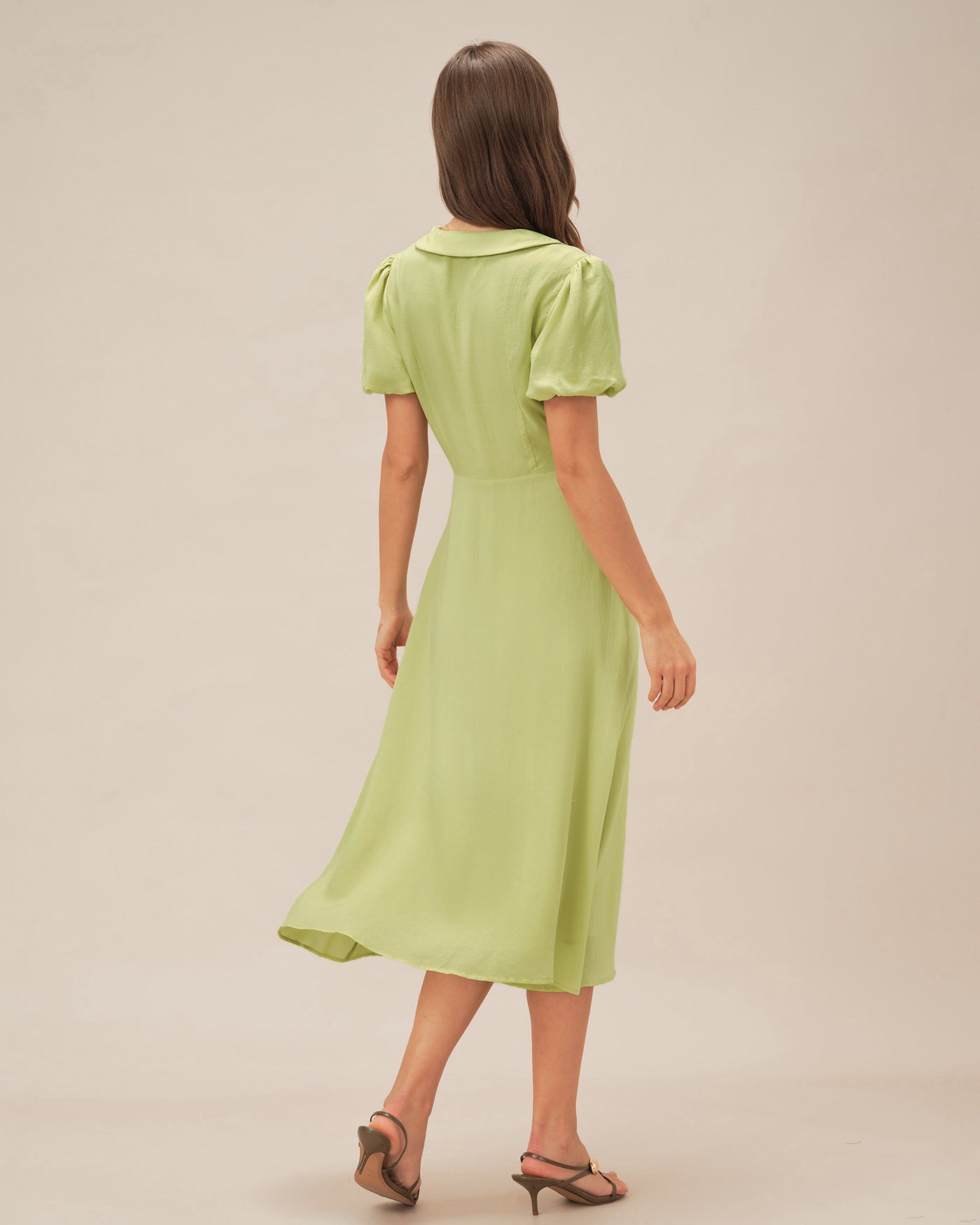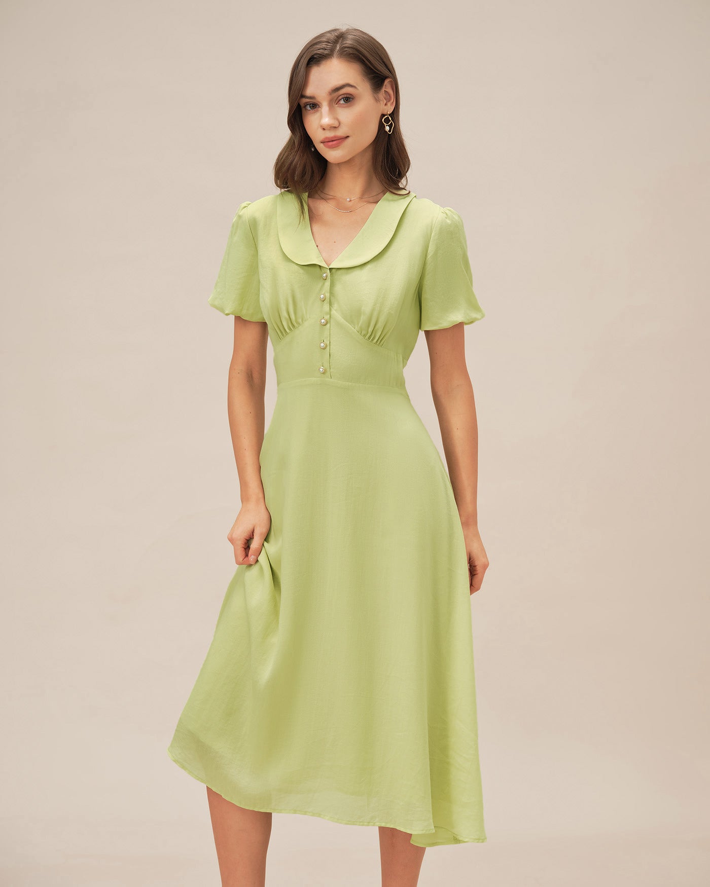 Green Collar Button Midi Dress