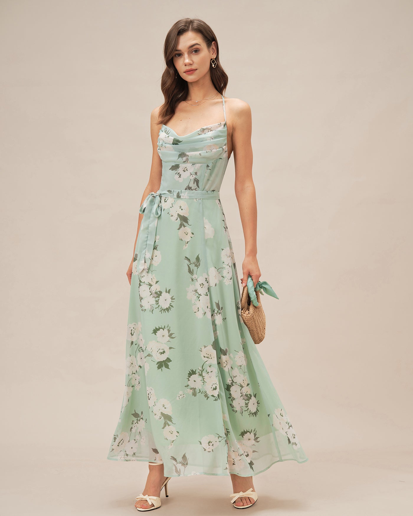 Green Cowl Neck Floral Maxi Dress