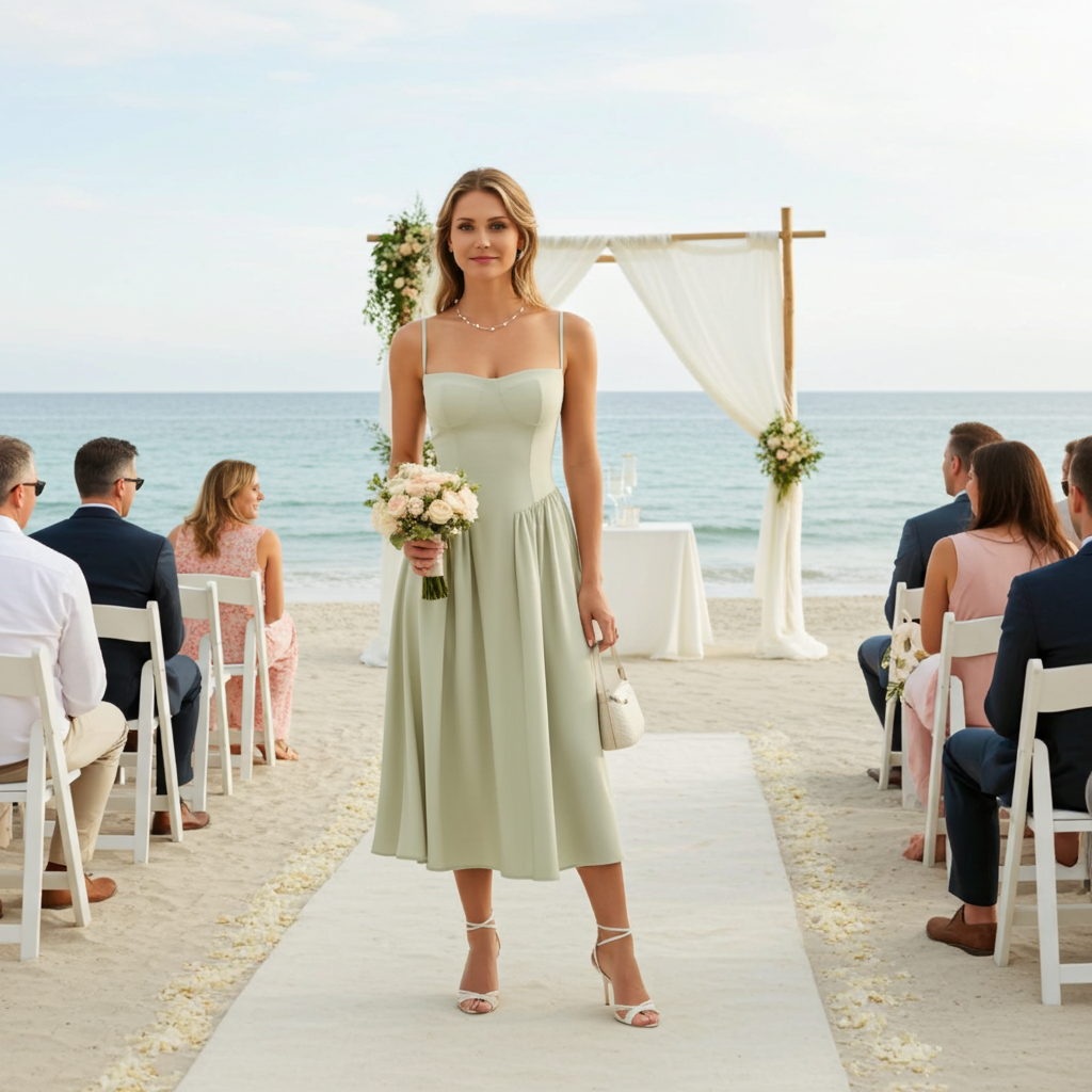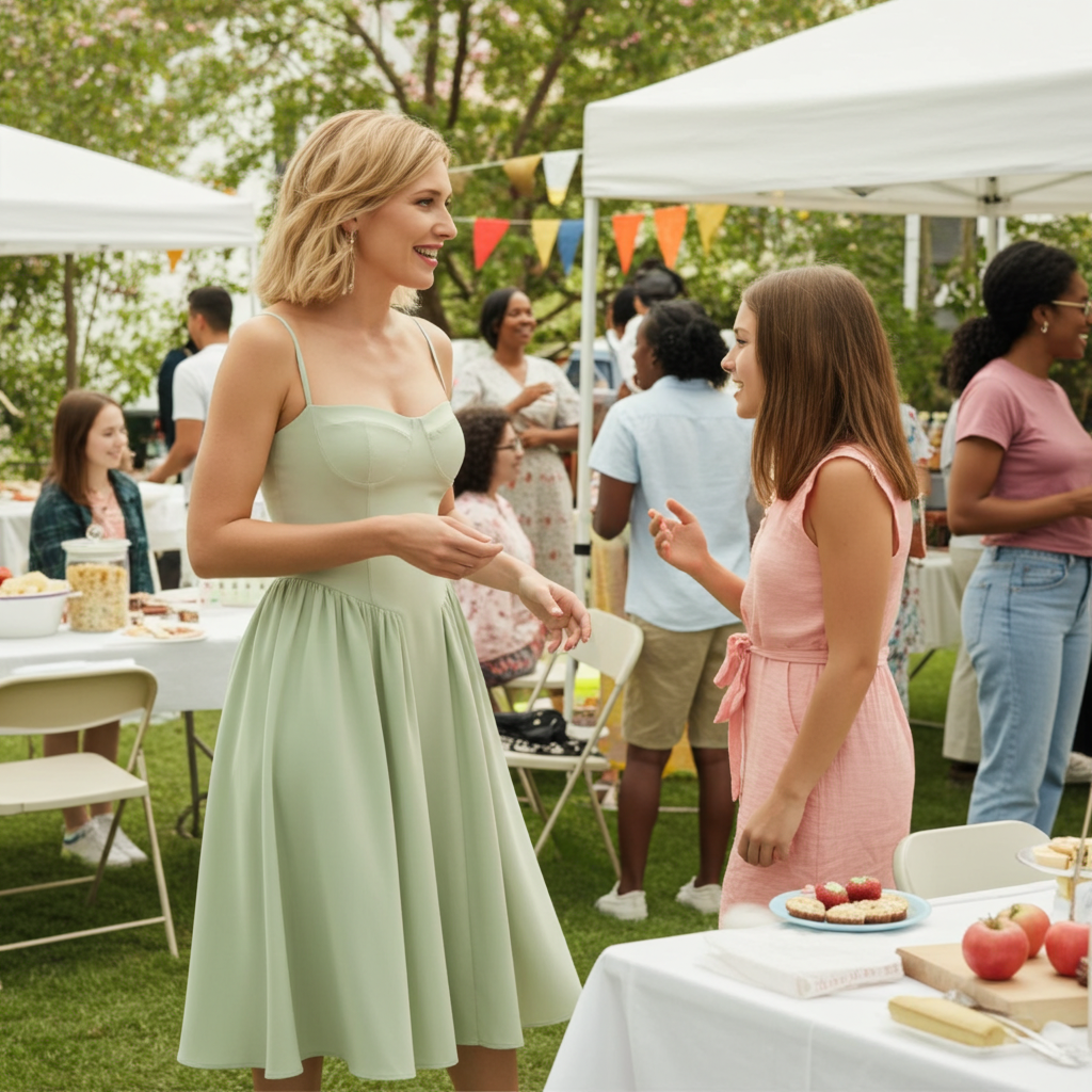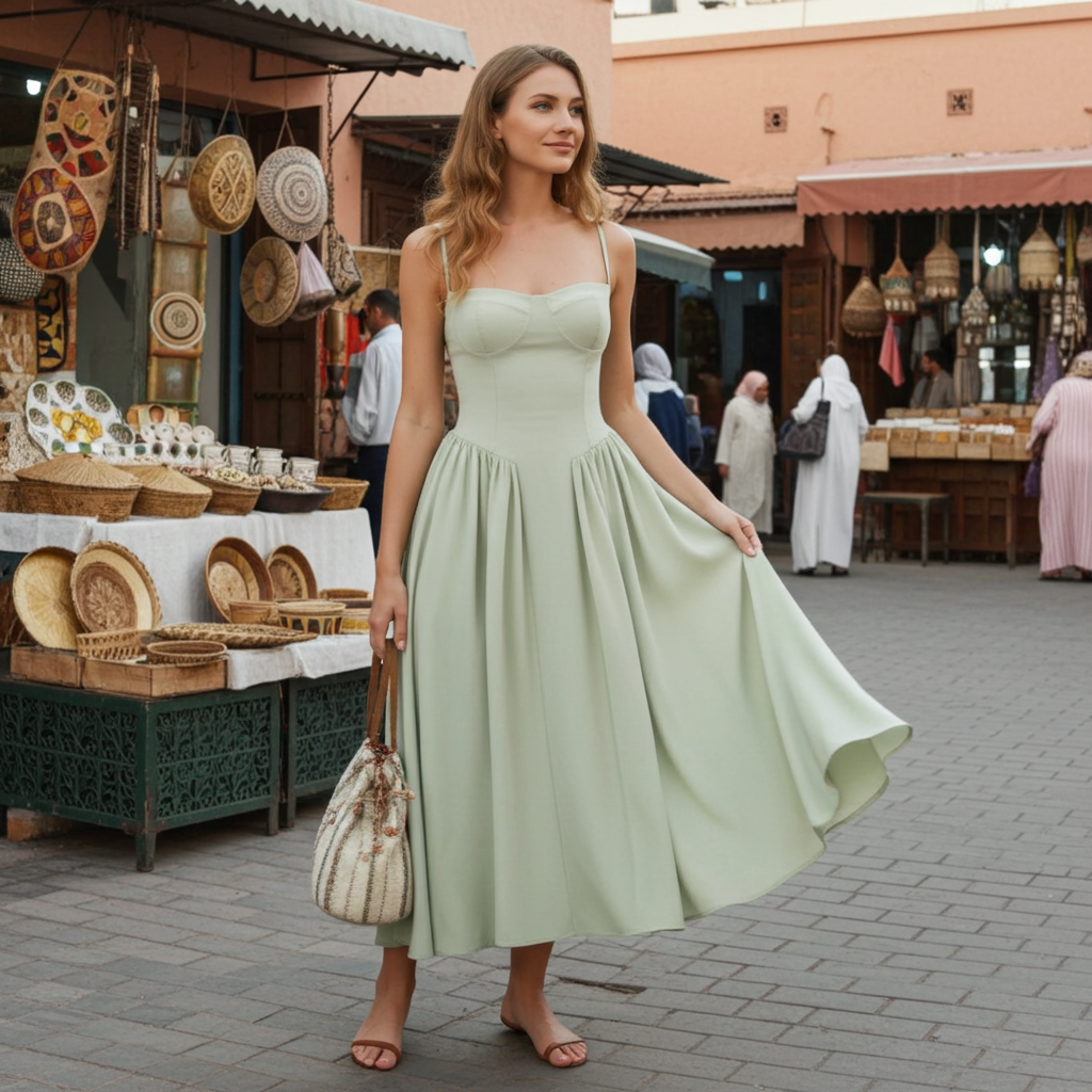 Grünes Midikleid mit quadratischem Ausschnitt und Tasche