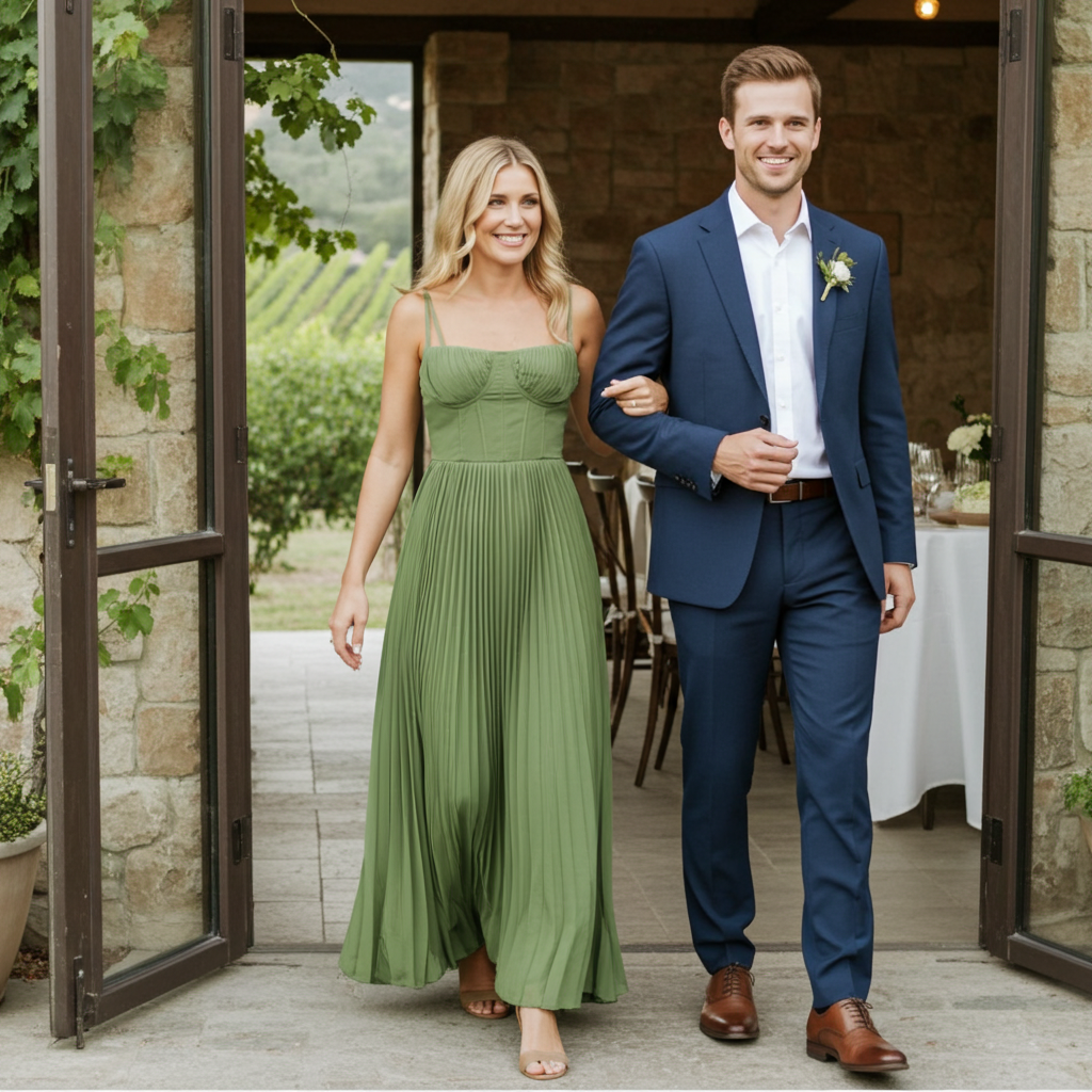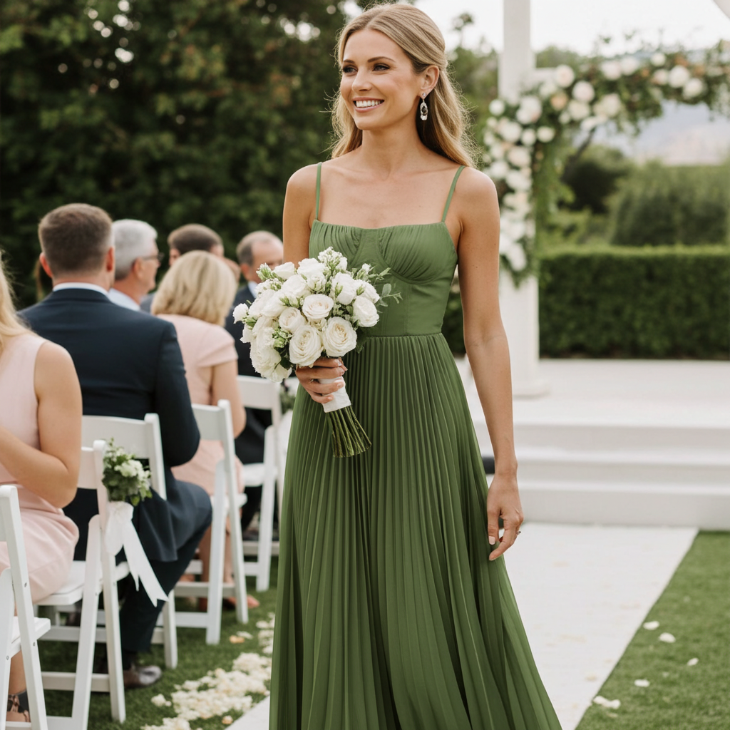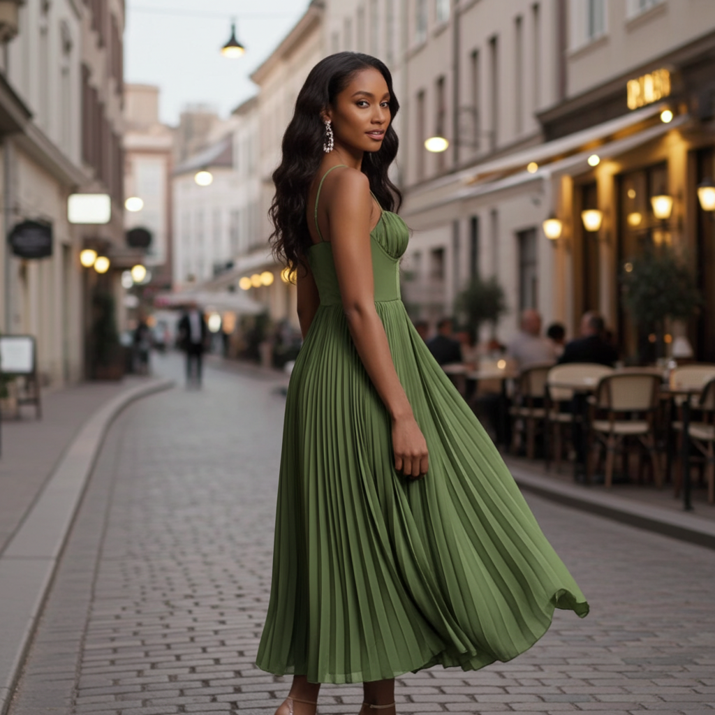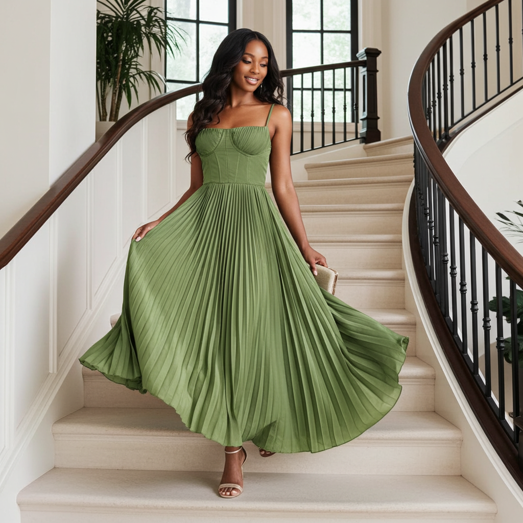 Grünes, fließendes Maxikleid mit Herzausschnitt