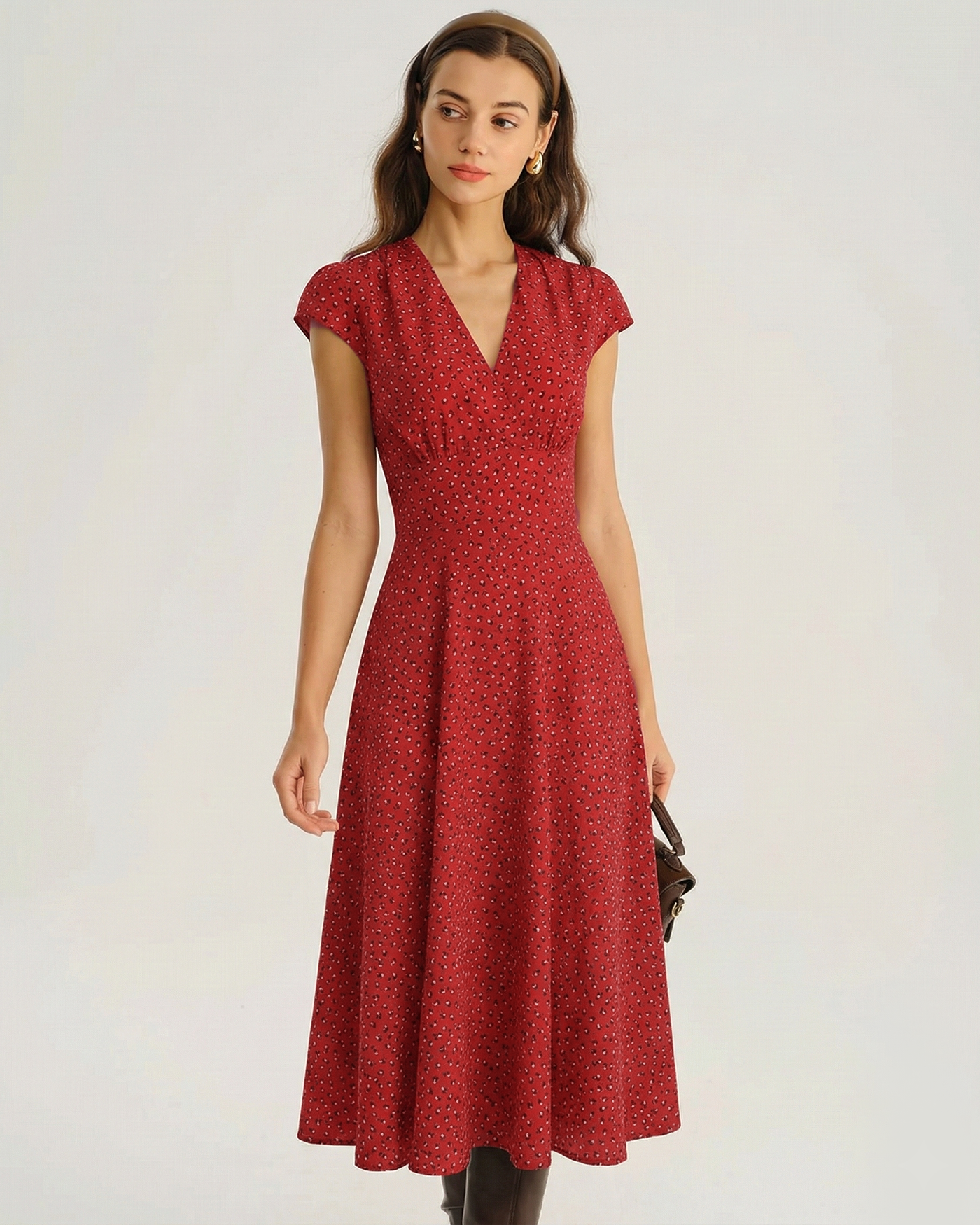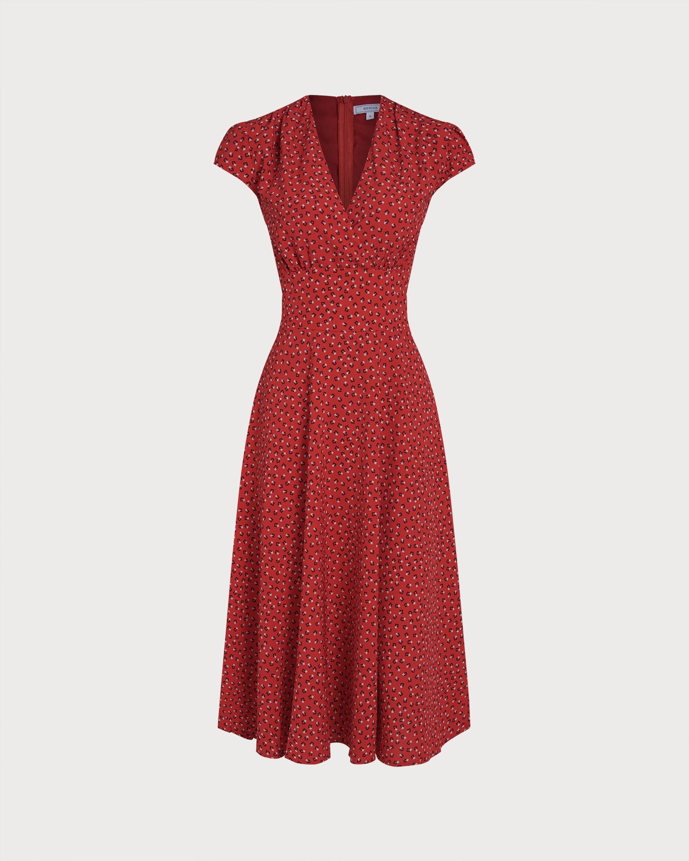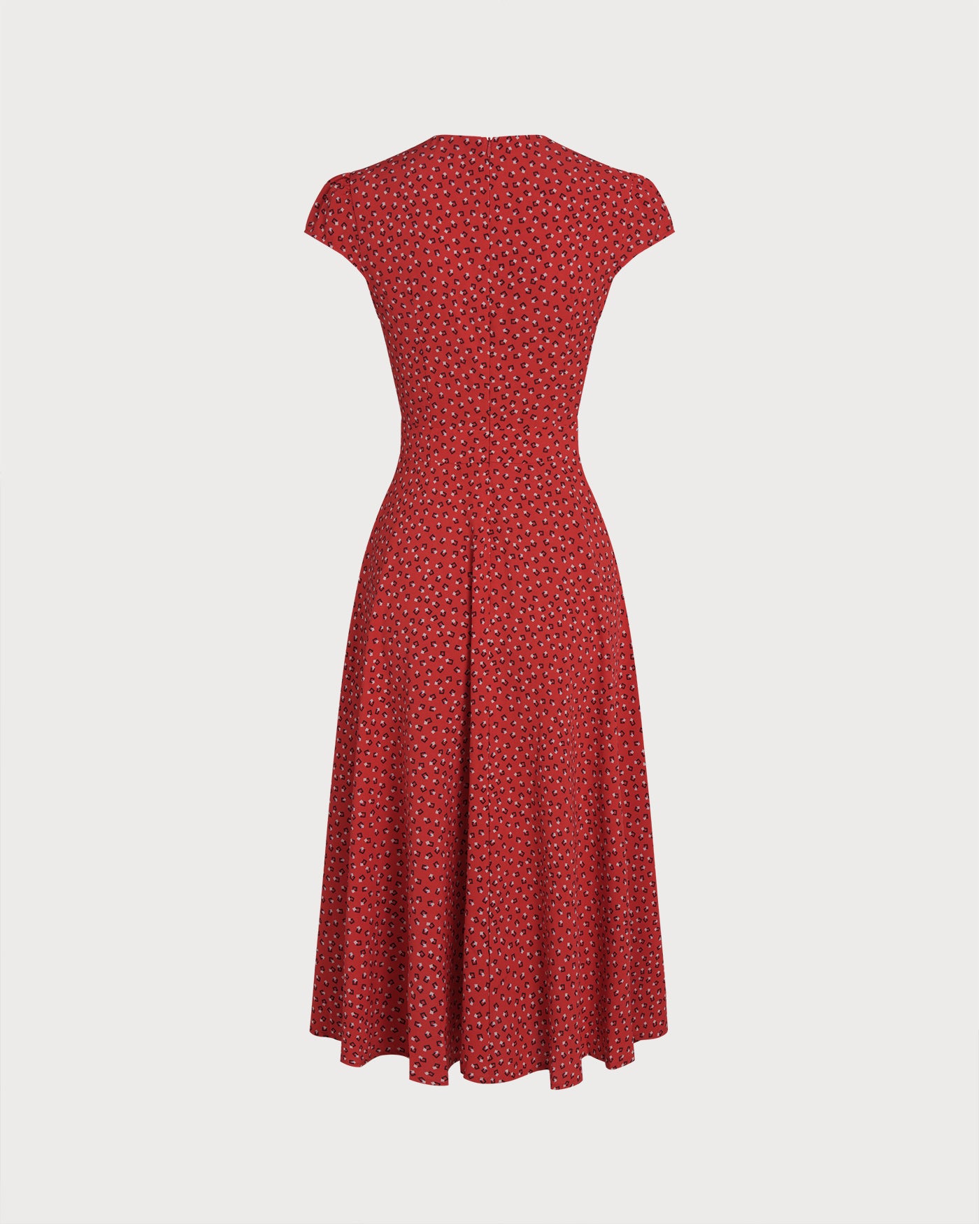 Red Cap Sleeve Floral Midi Dress
