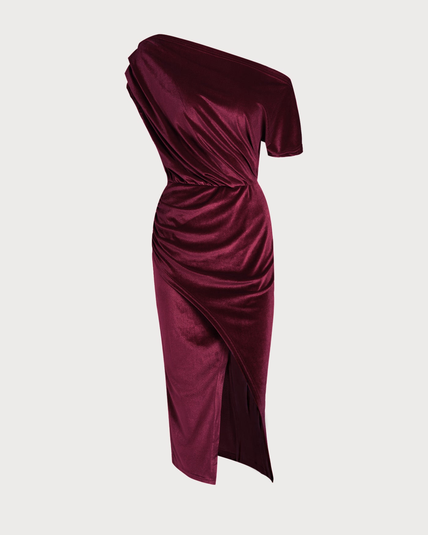 Red Sleeveless One Shoulder Velour Midi Dress
