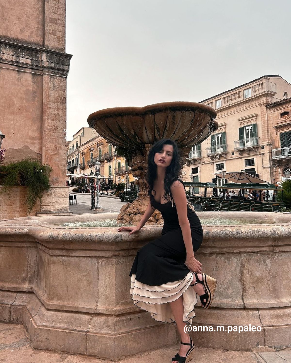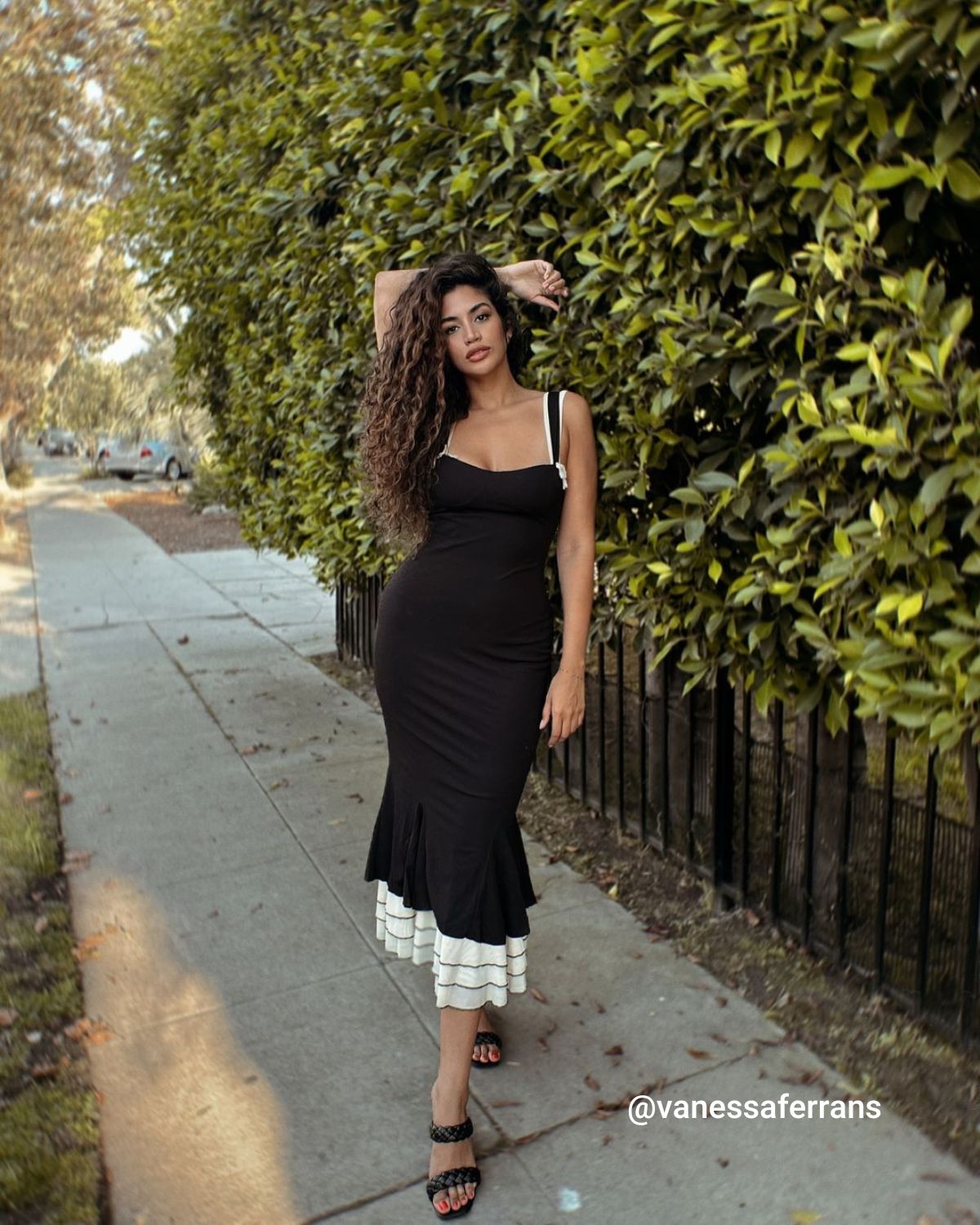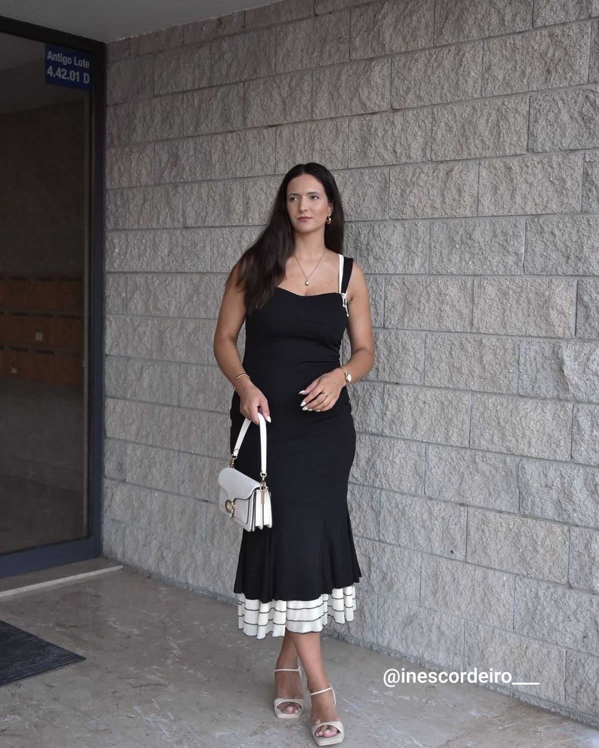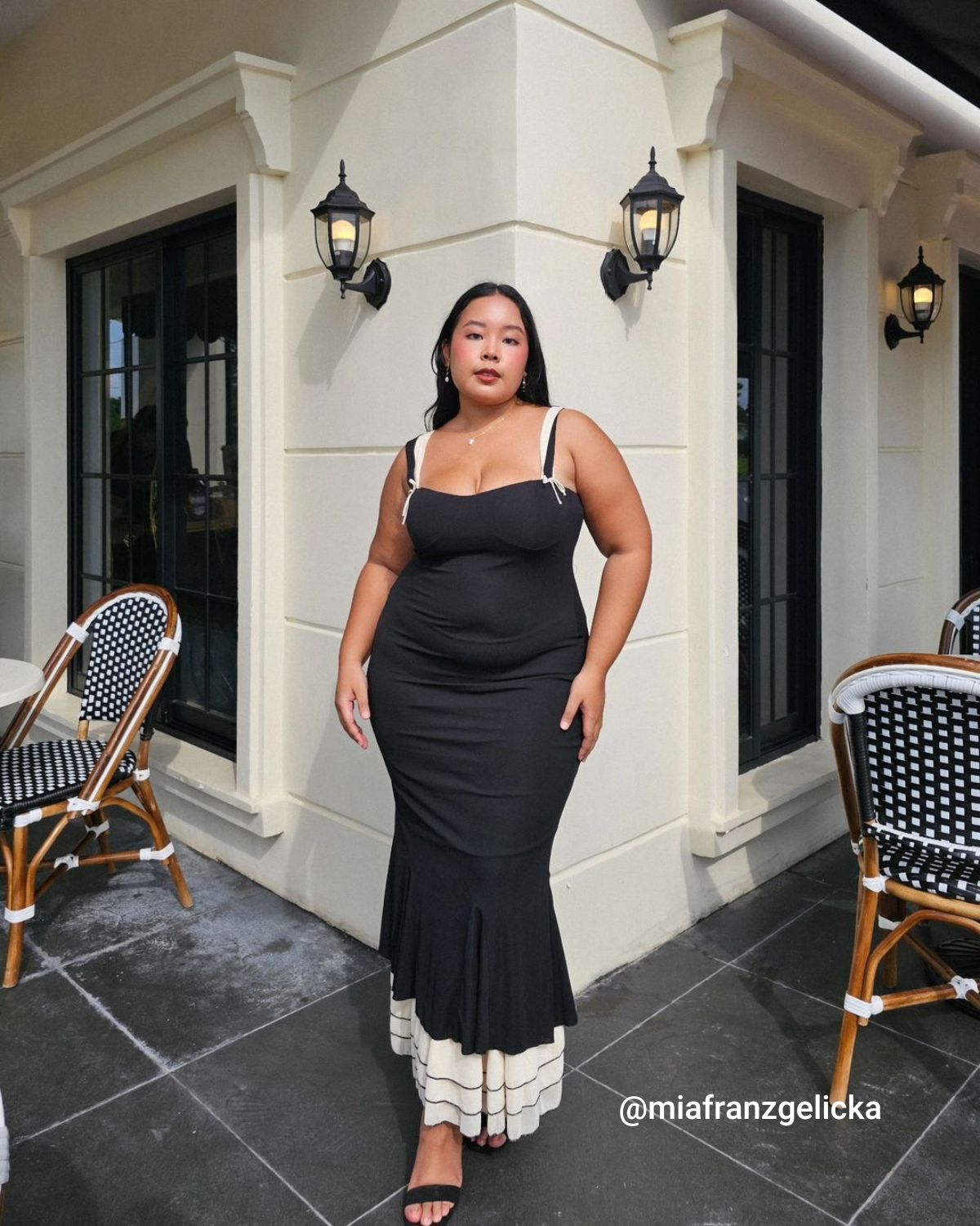 Das schwarze, figurbetonte Maxikleid mit Herzausschnitt