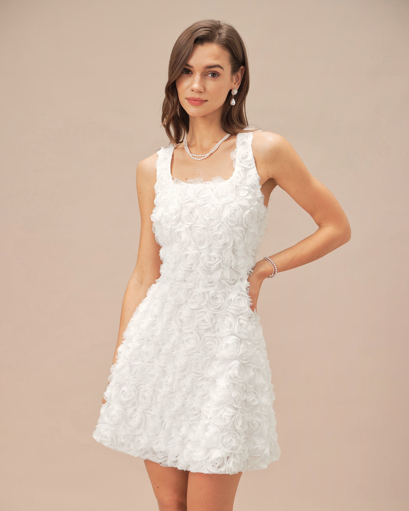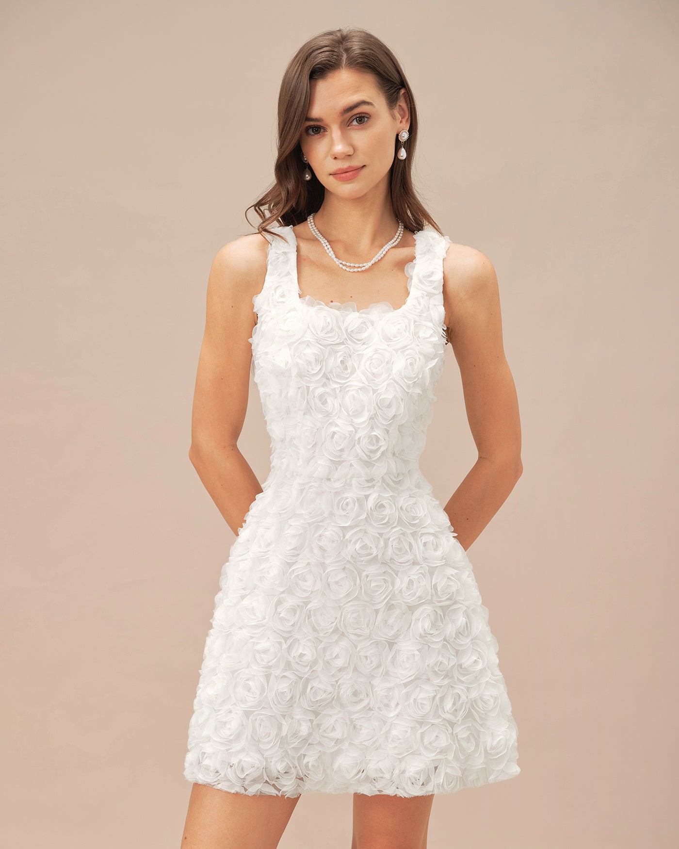 White Square Neck Floral A-Line Mini Dress