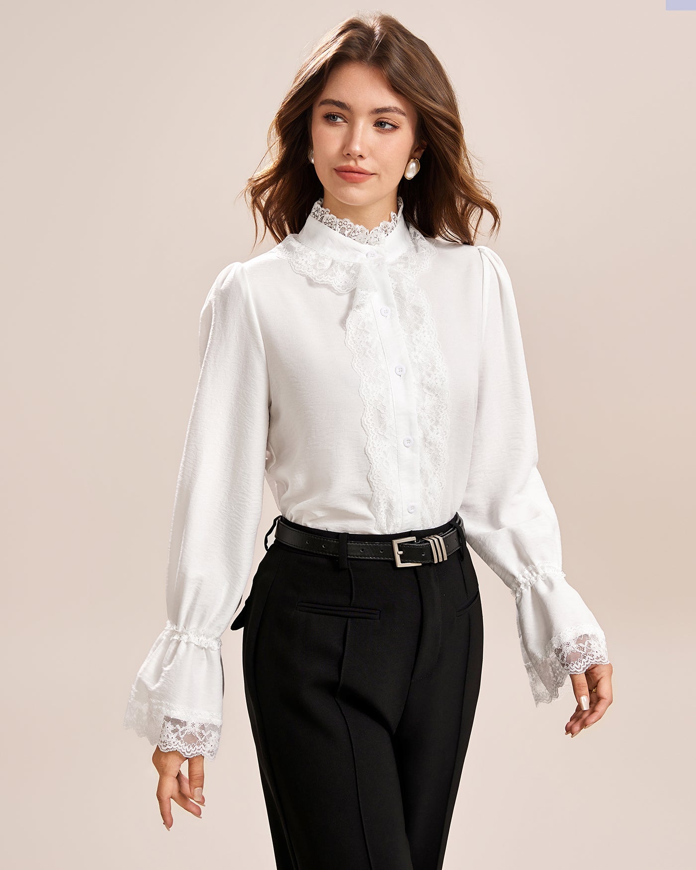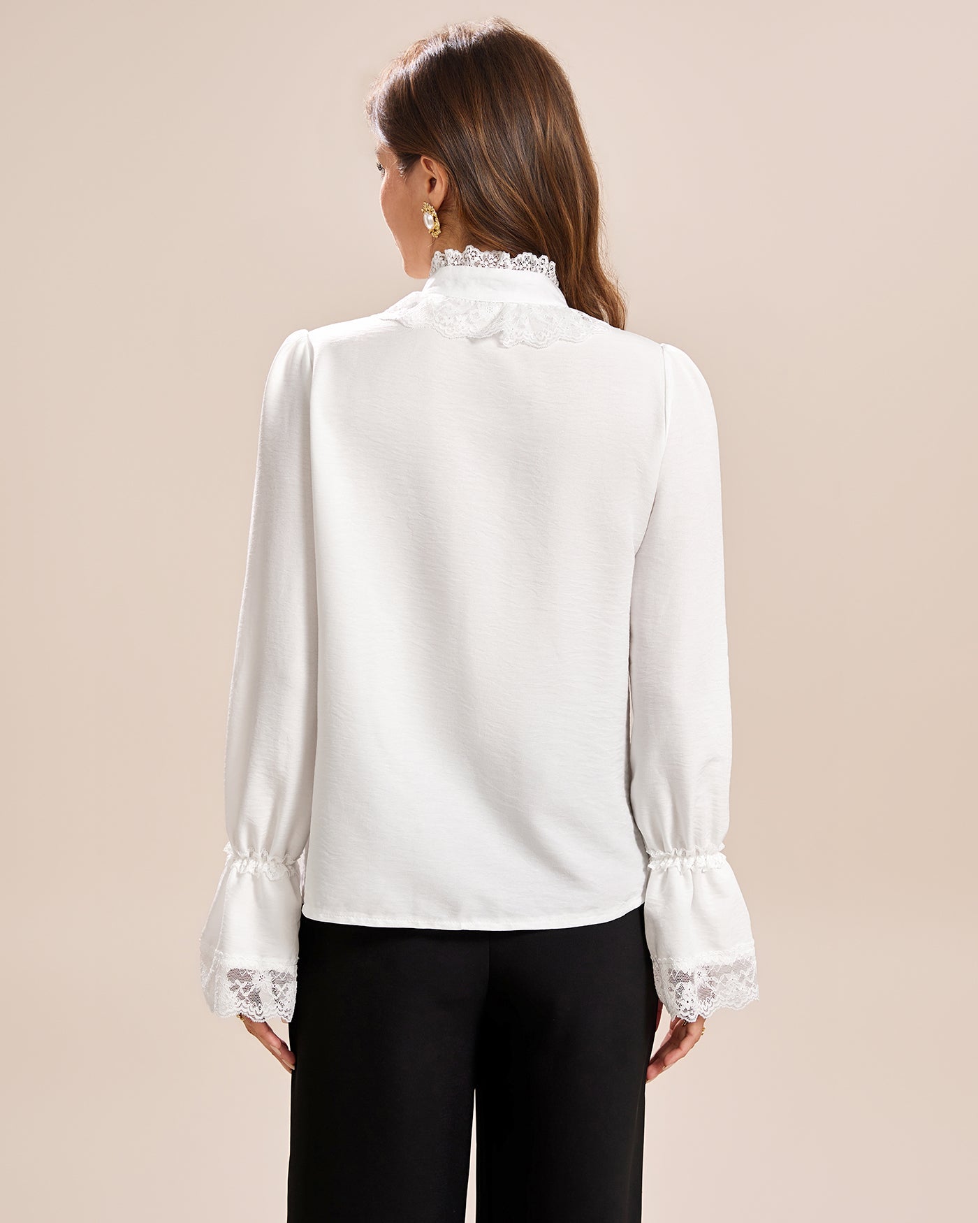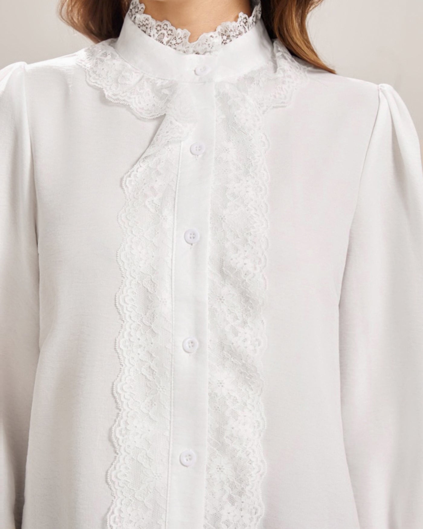 White Turtle Poet Sleeve Lace Shirt