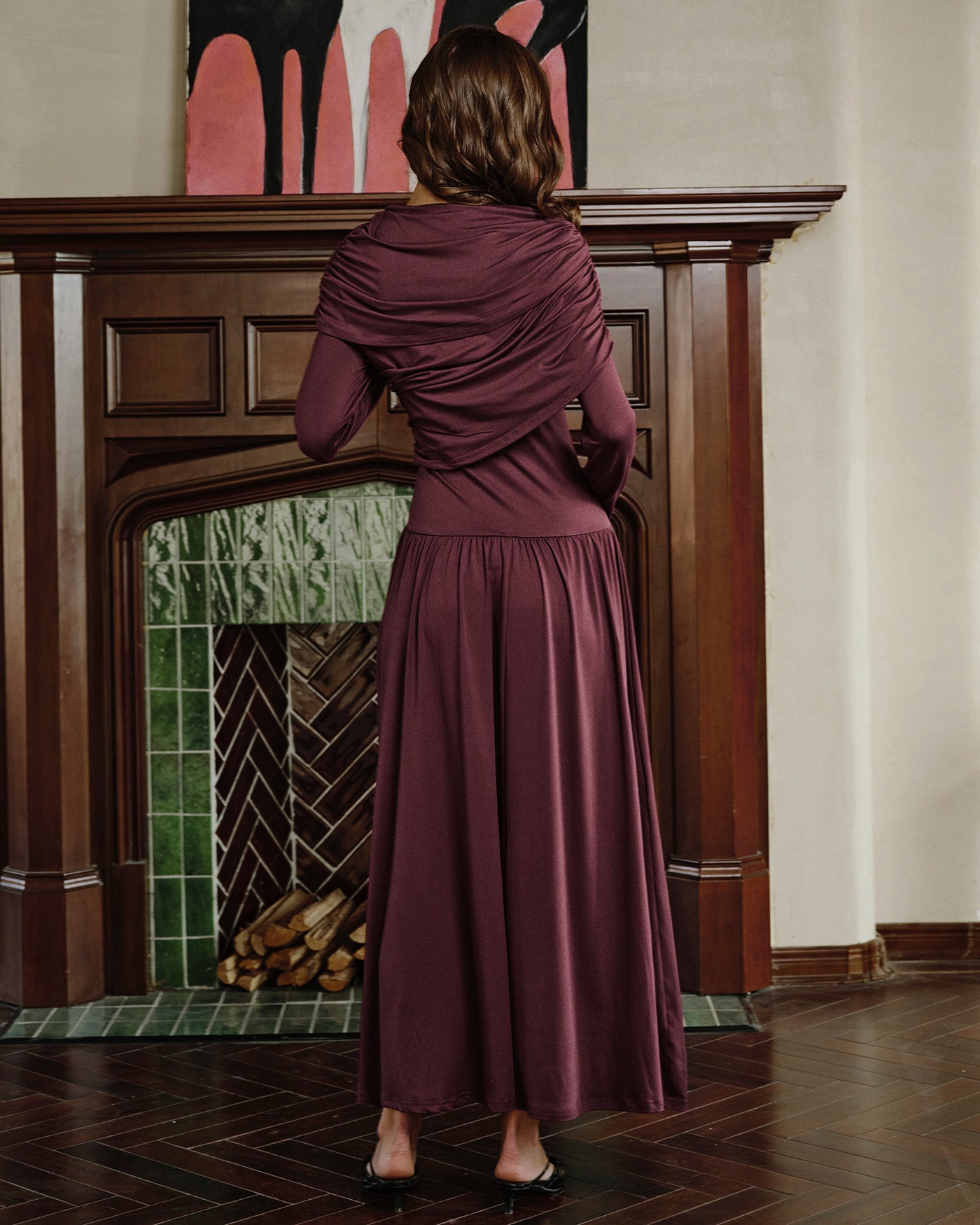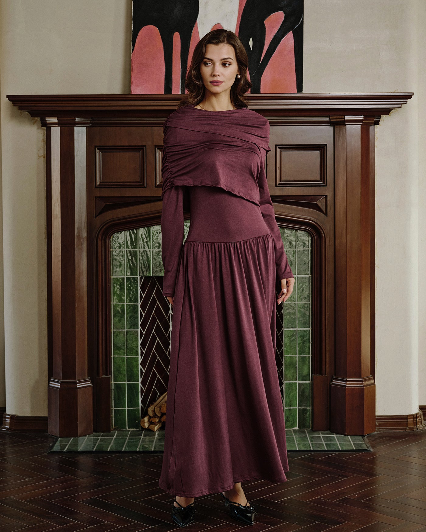 Wine Red Cowl Neck Tunic Maxi Dress
