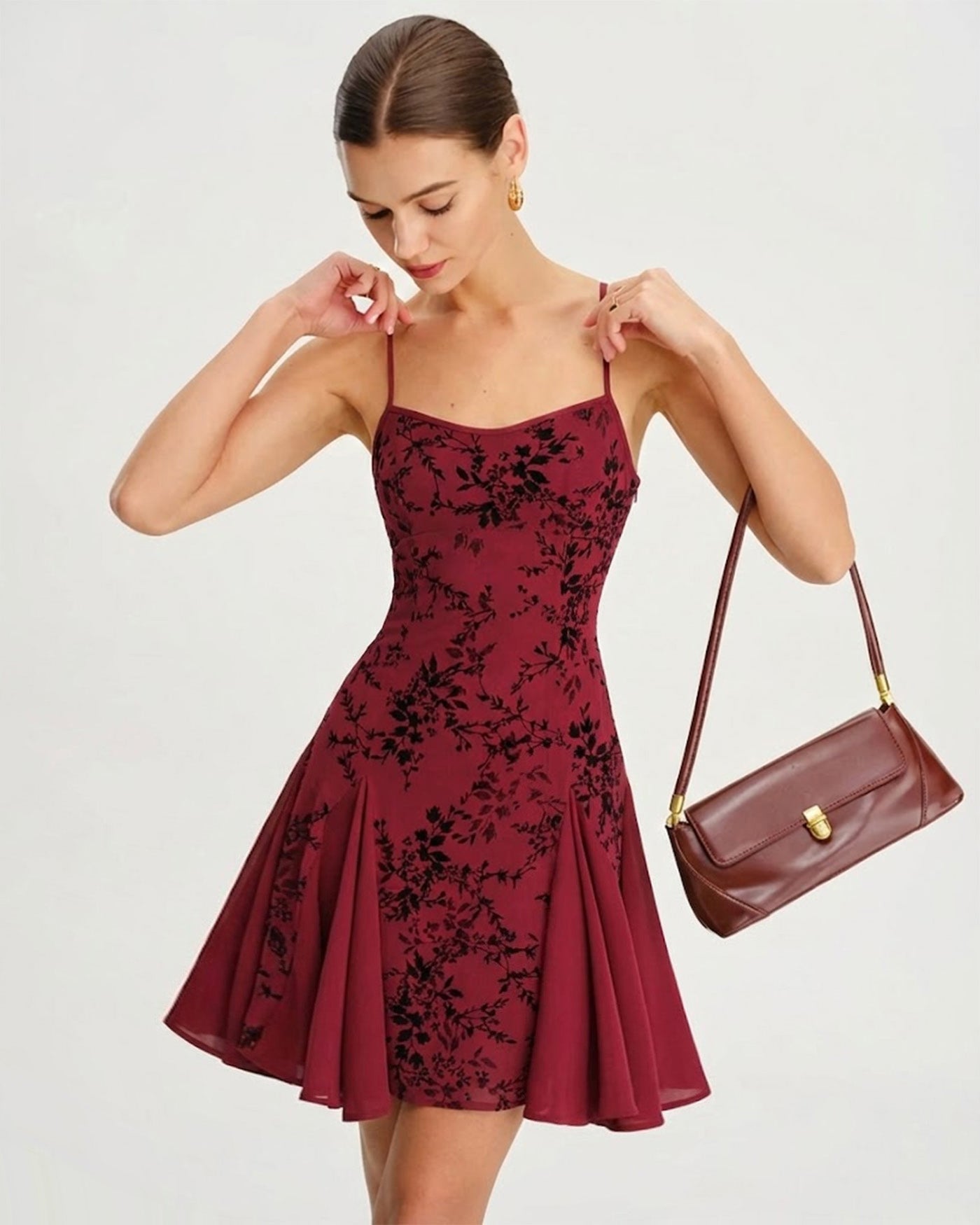 Wine Red Floral Mini Dress
