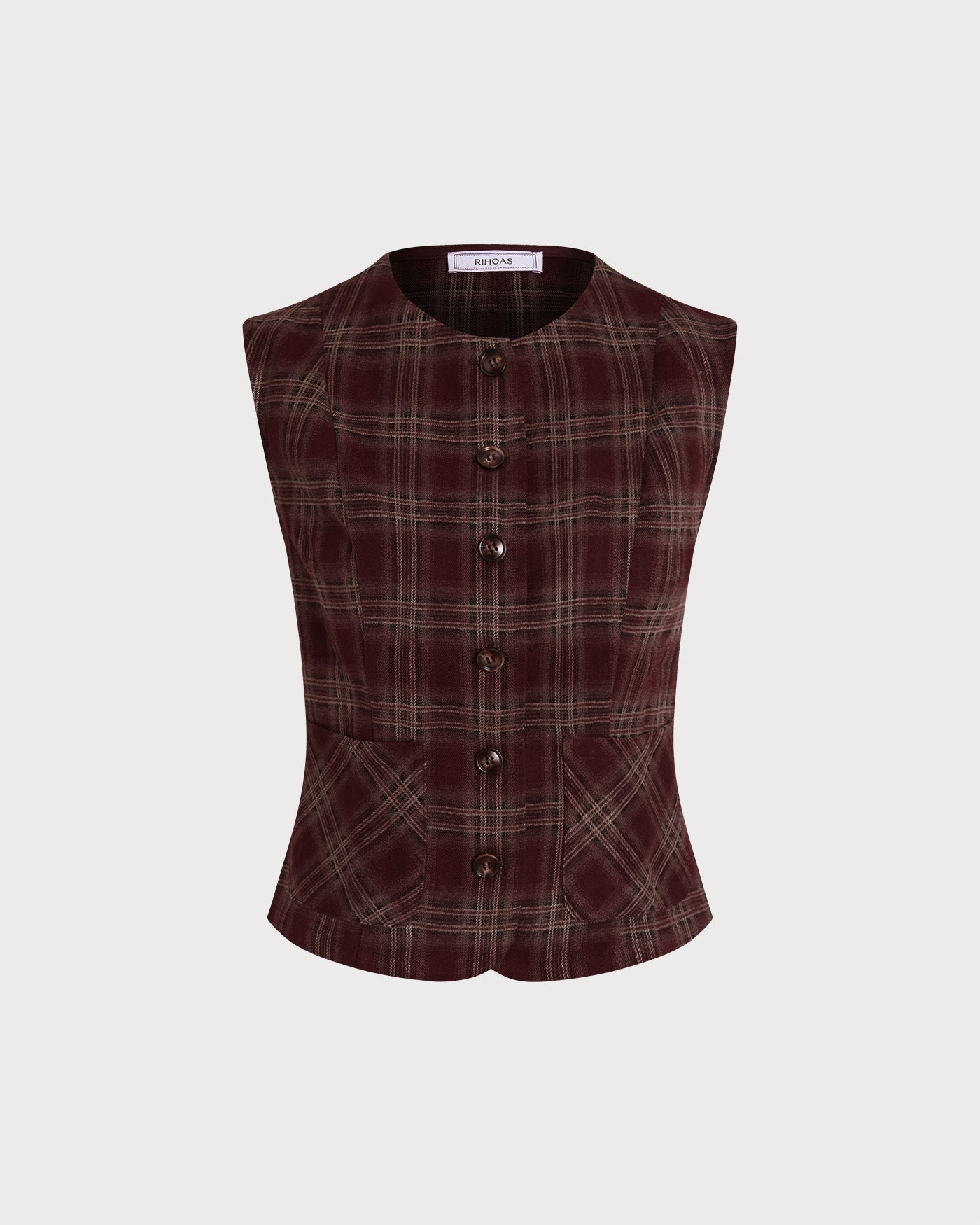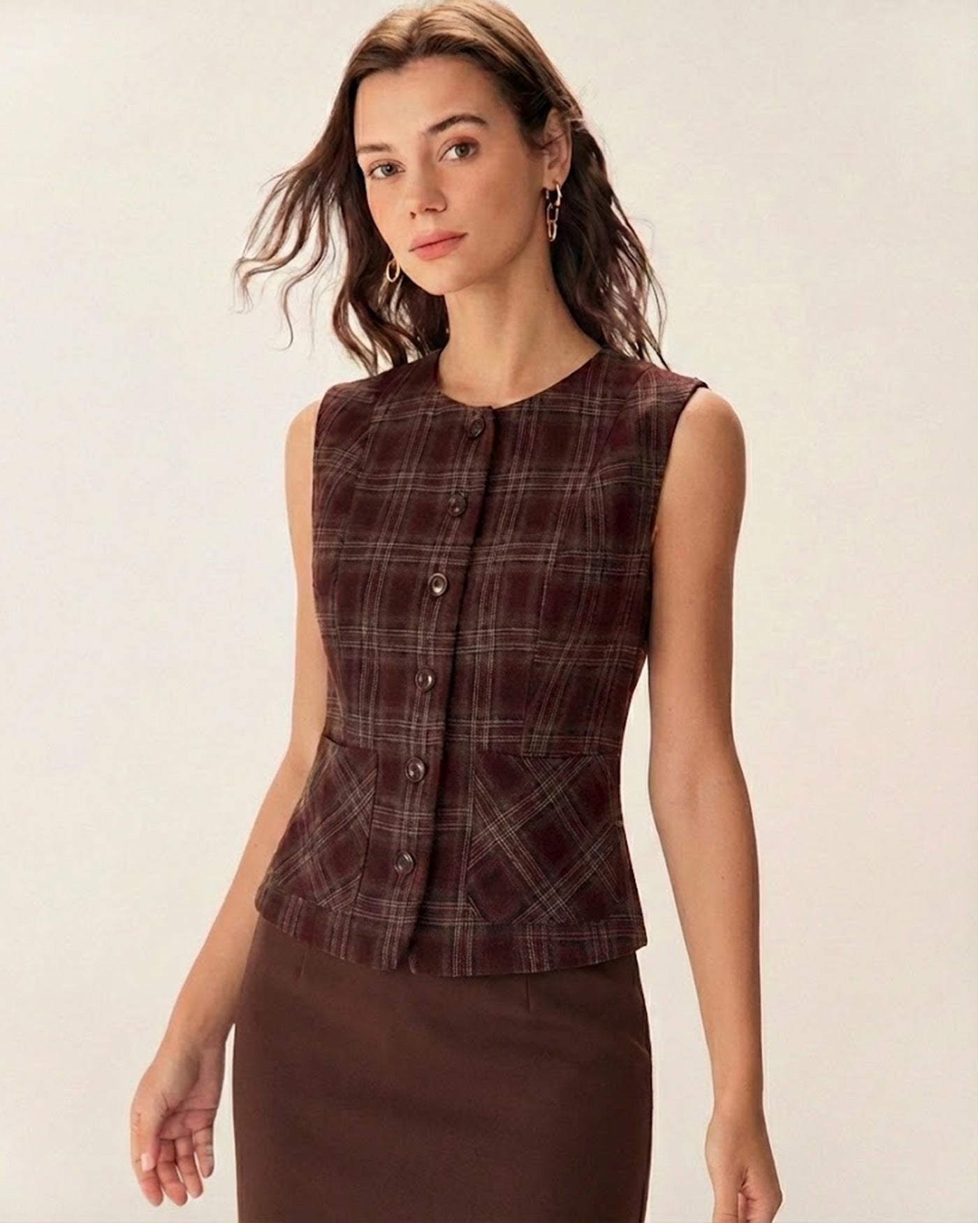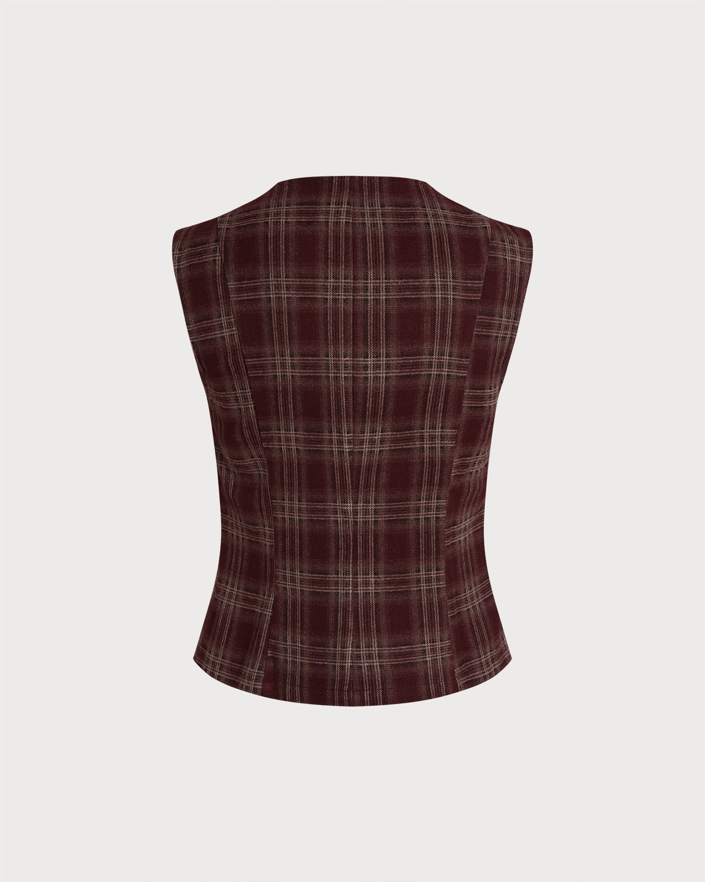 Wine Red Plaid Single Breasted Vest