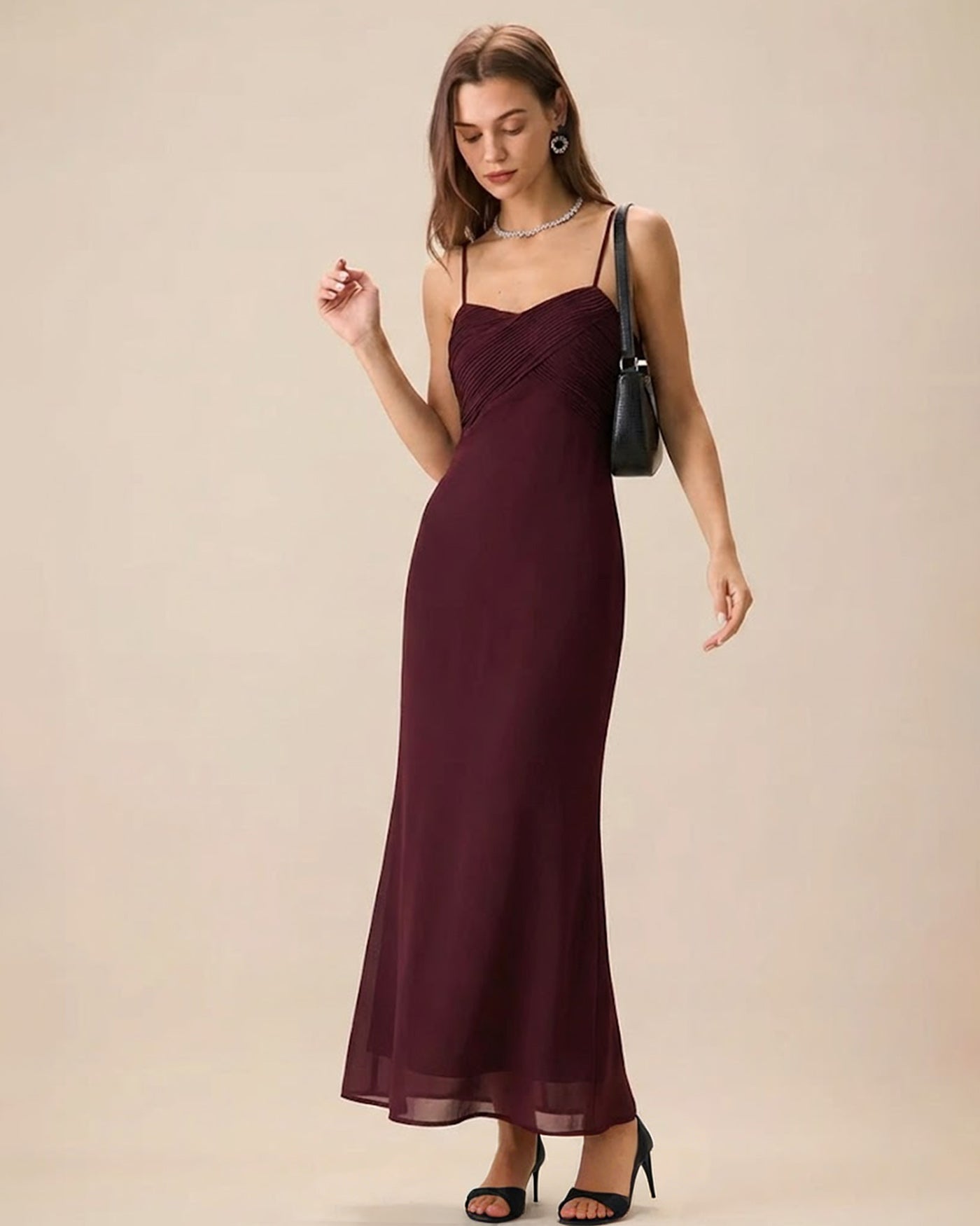 Wine Red Ruched Slip Maxi Dress