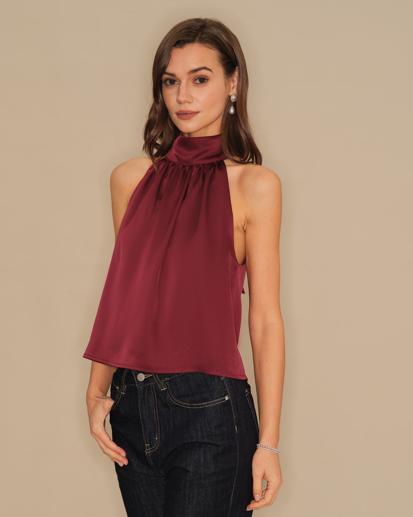 Wine Red Turtle Bowknot Satin Tank Top