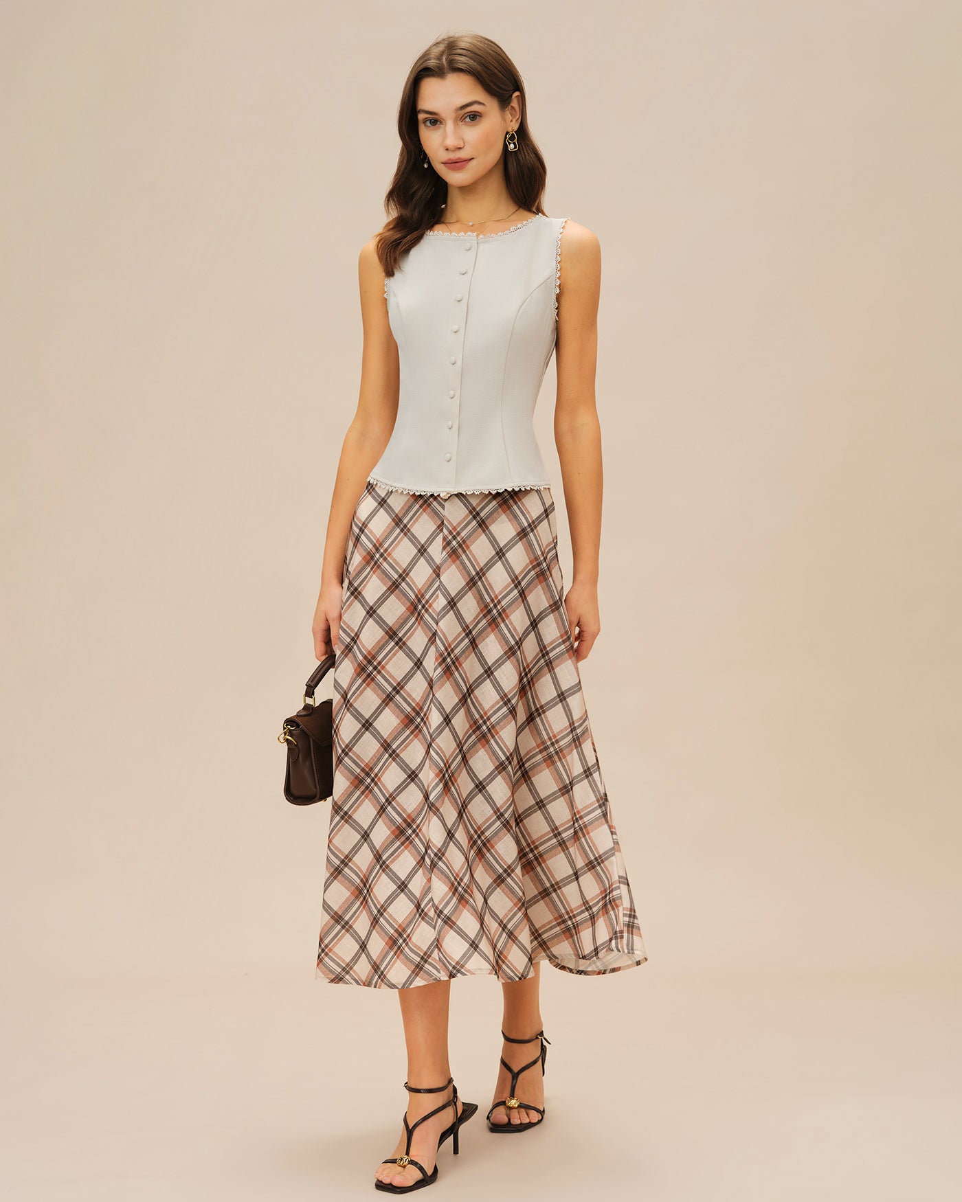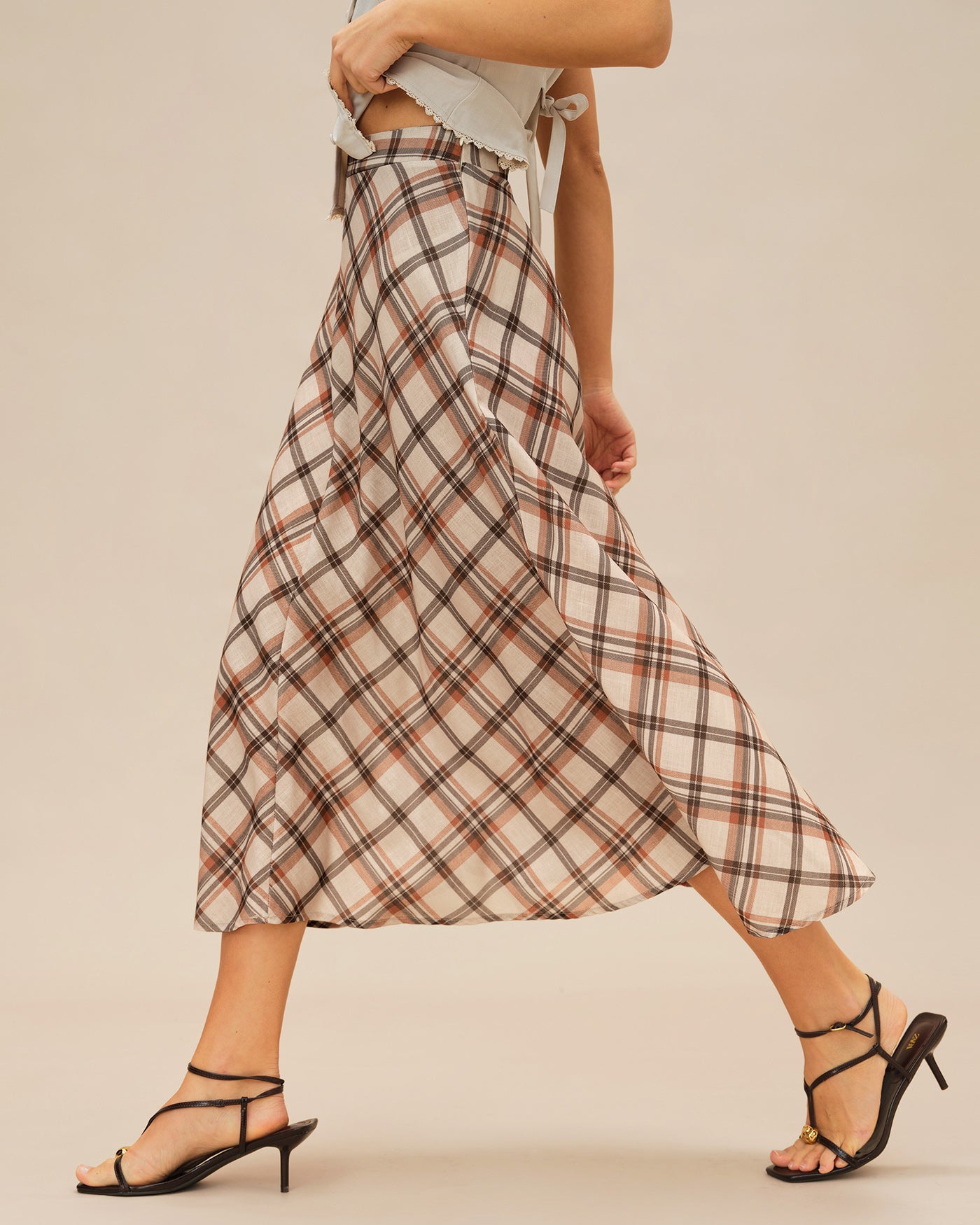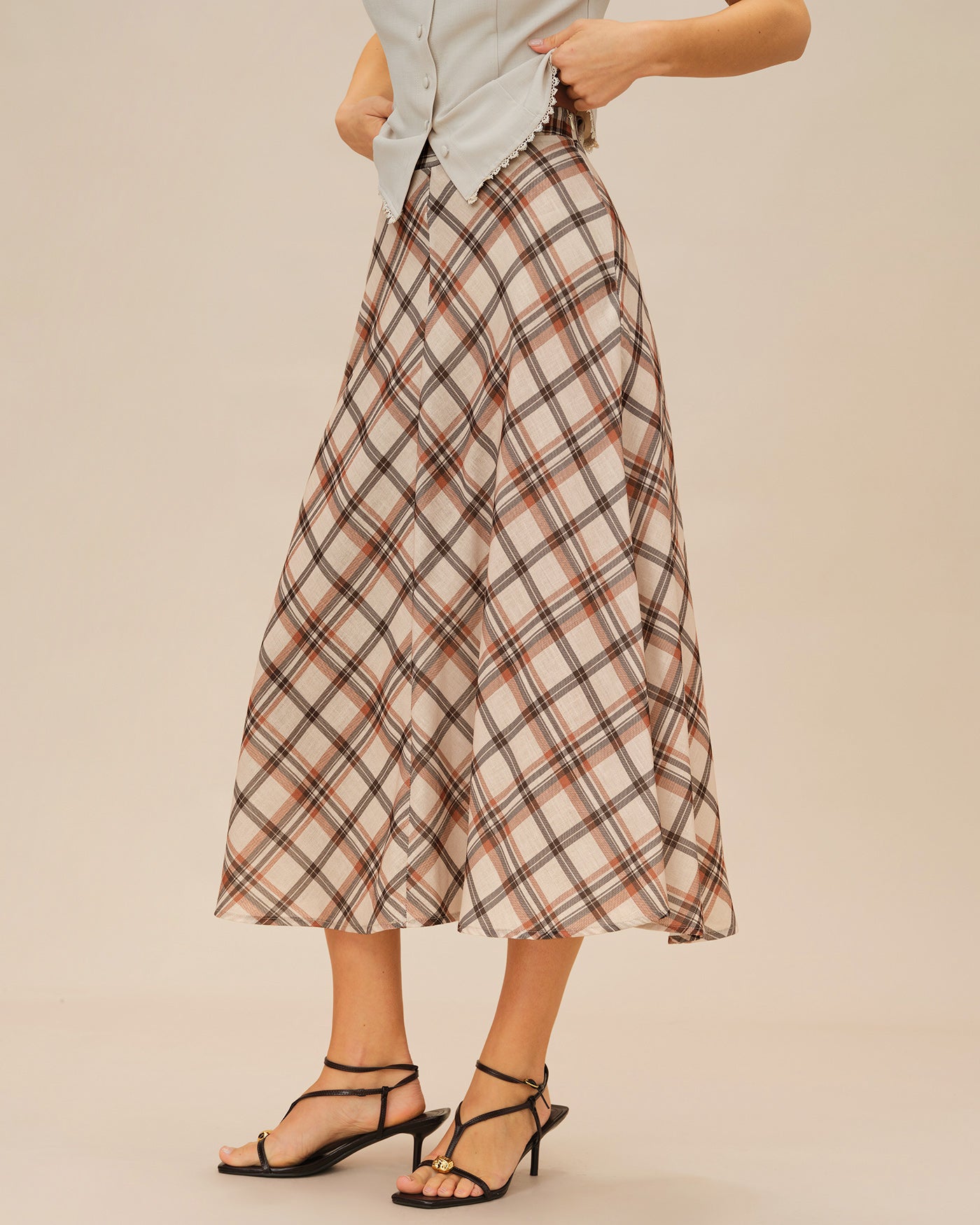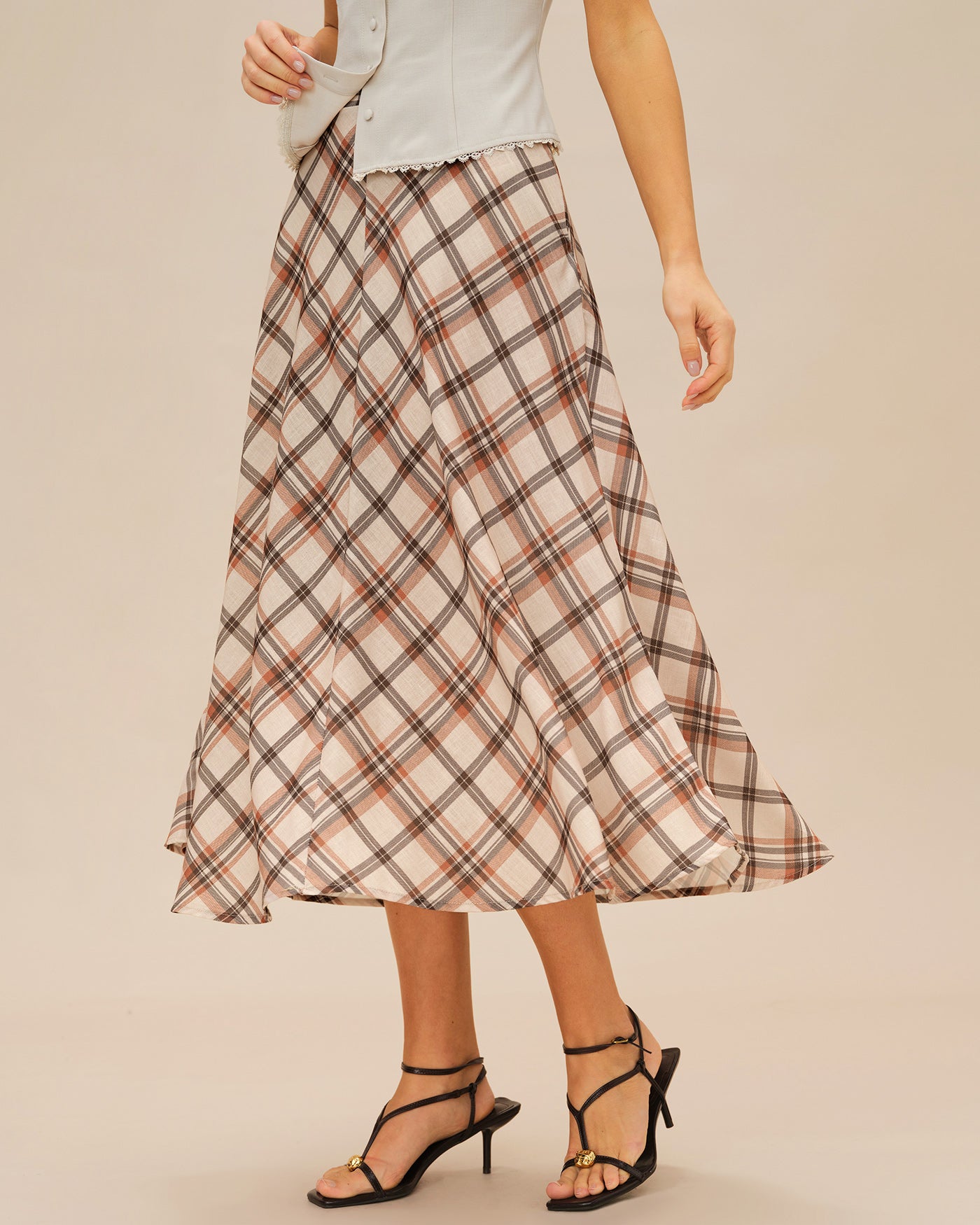 Apricot Plaid Midi Skirt