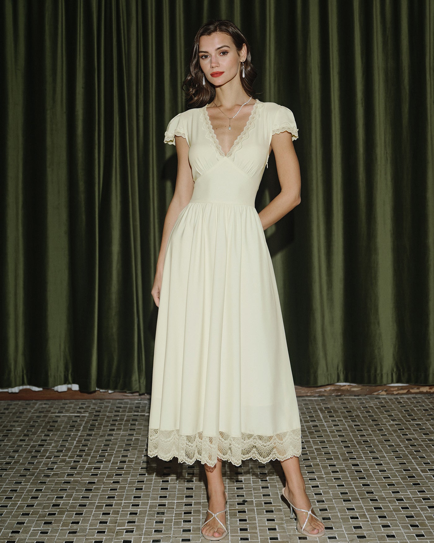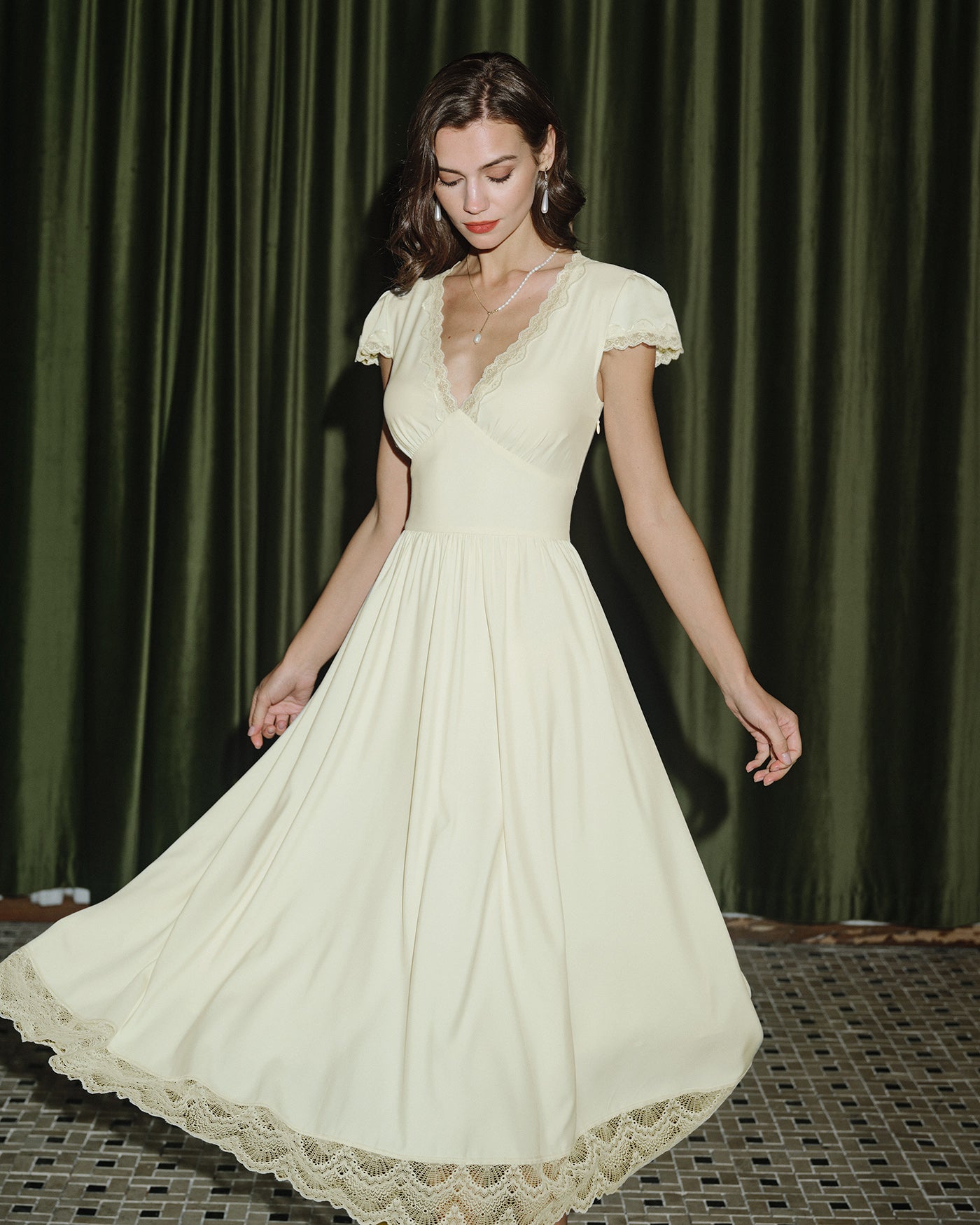 Apricot V Neck Lace Maxi Dress
