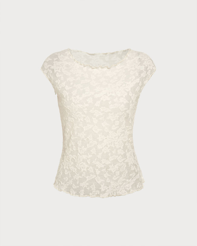 Beige Textured See Through Tee