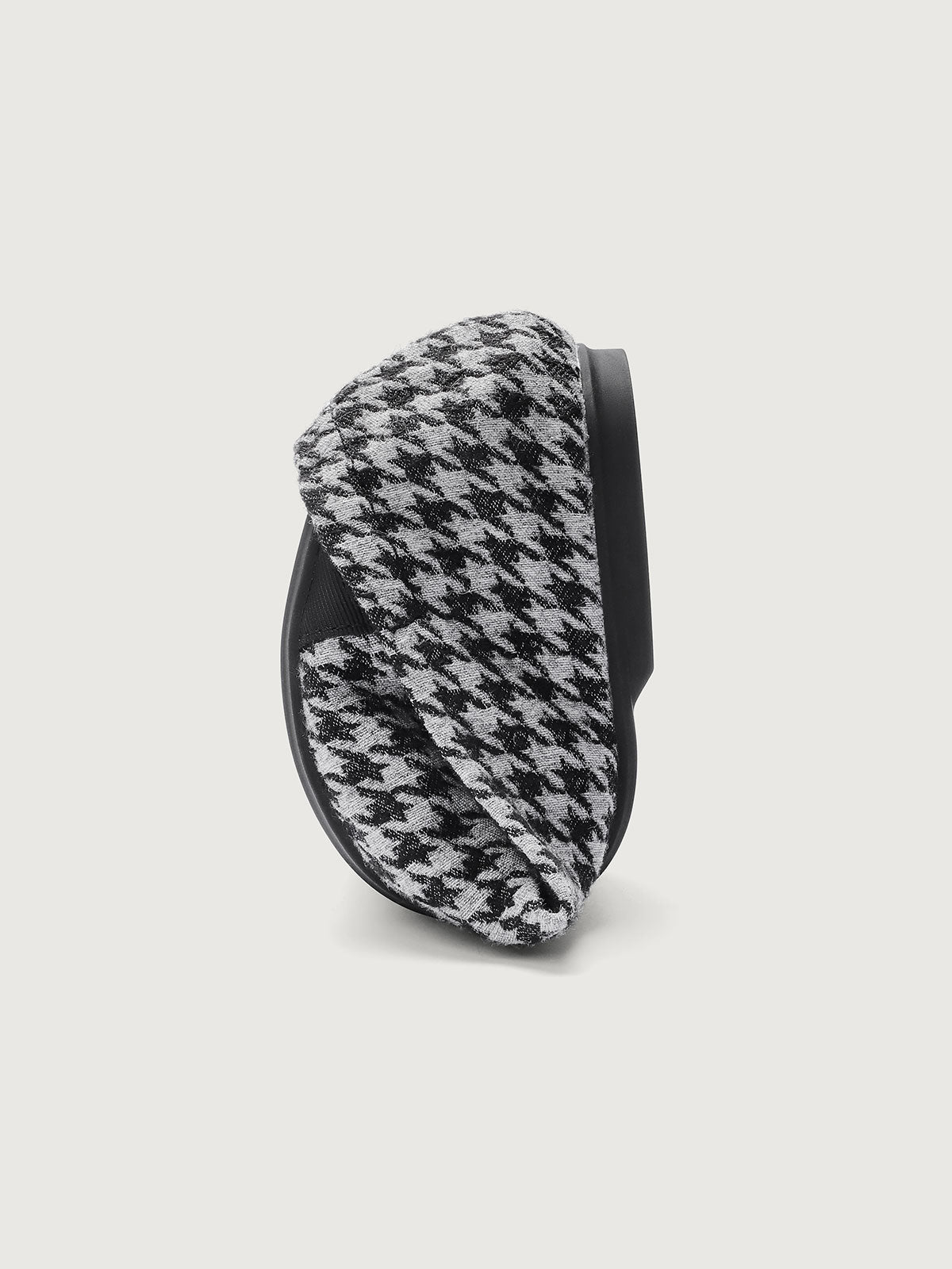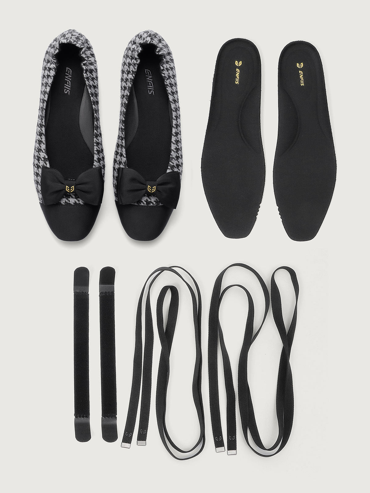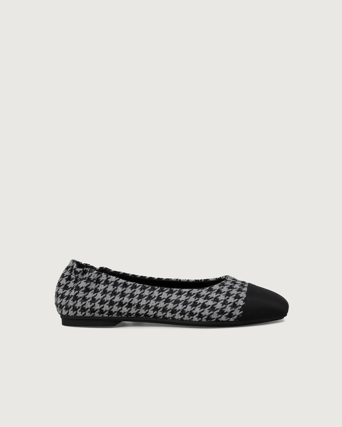Enfiis Black and Grey Houndstooth Jacquard Square Toe Ballet Flats
