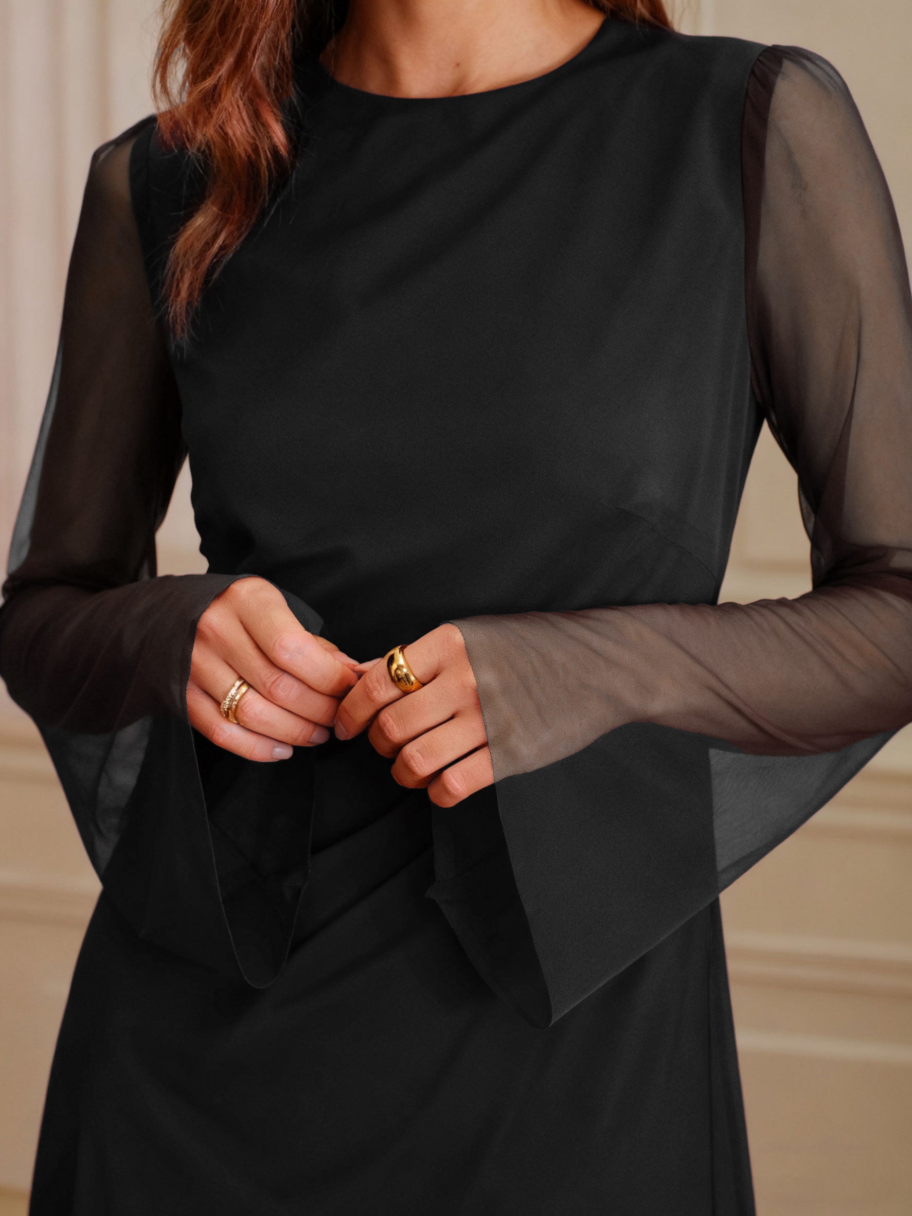 Black Boat Neck Mesh Mini Dress