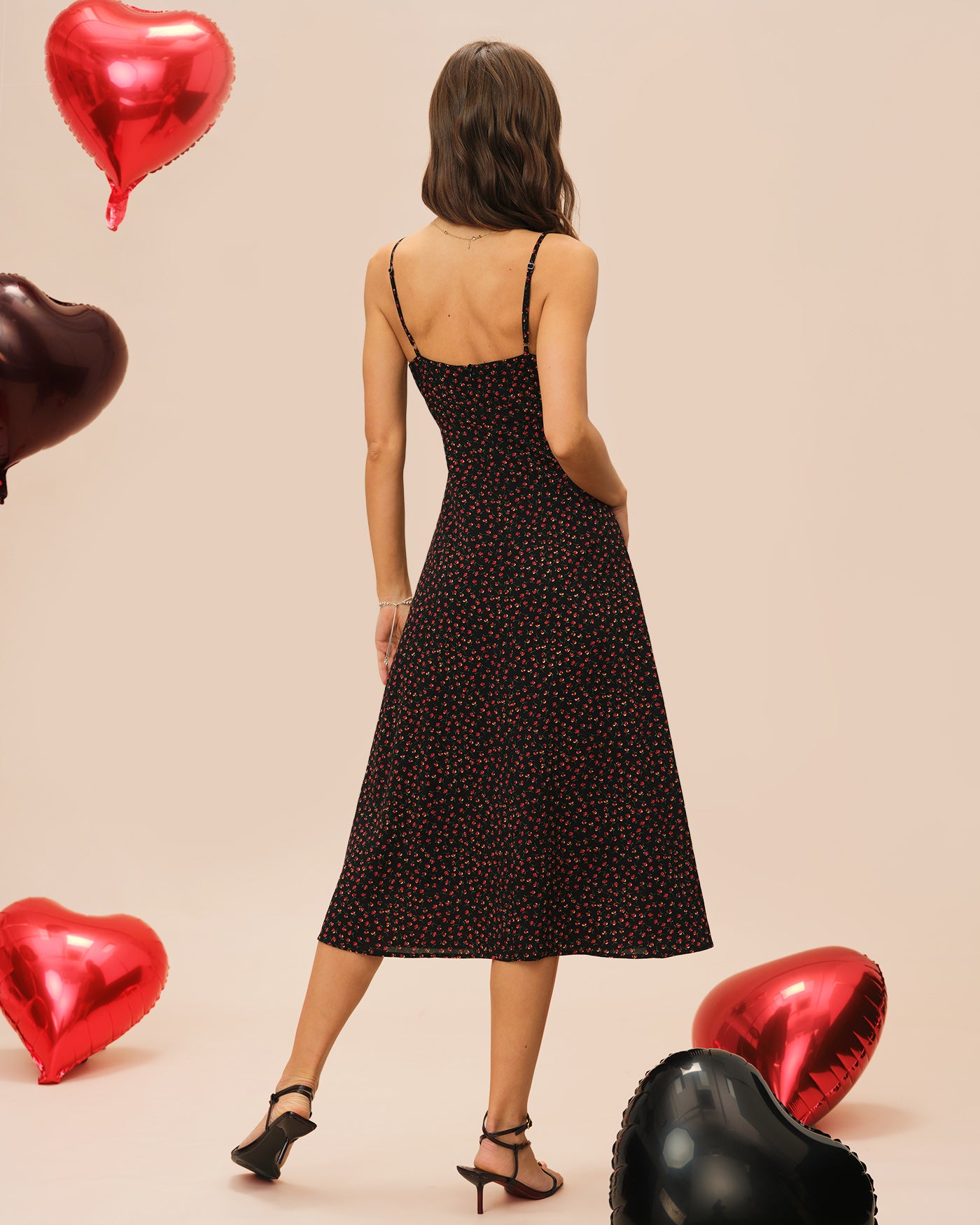 Black Floral Slip A-Line Midi Dress
