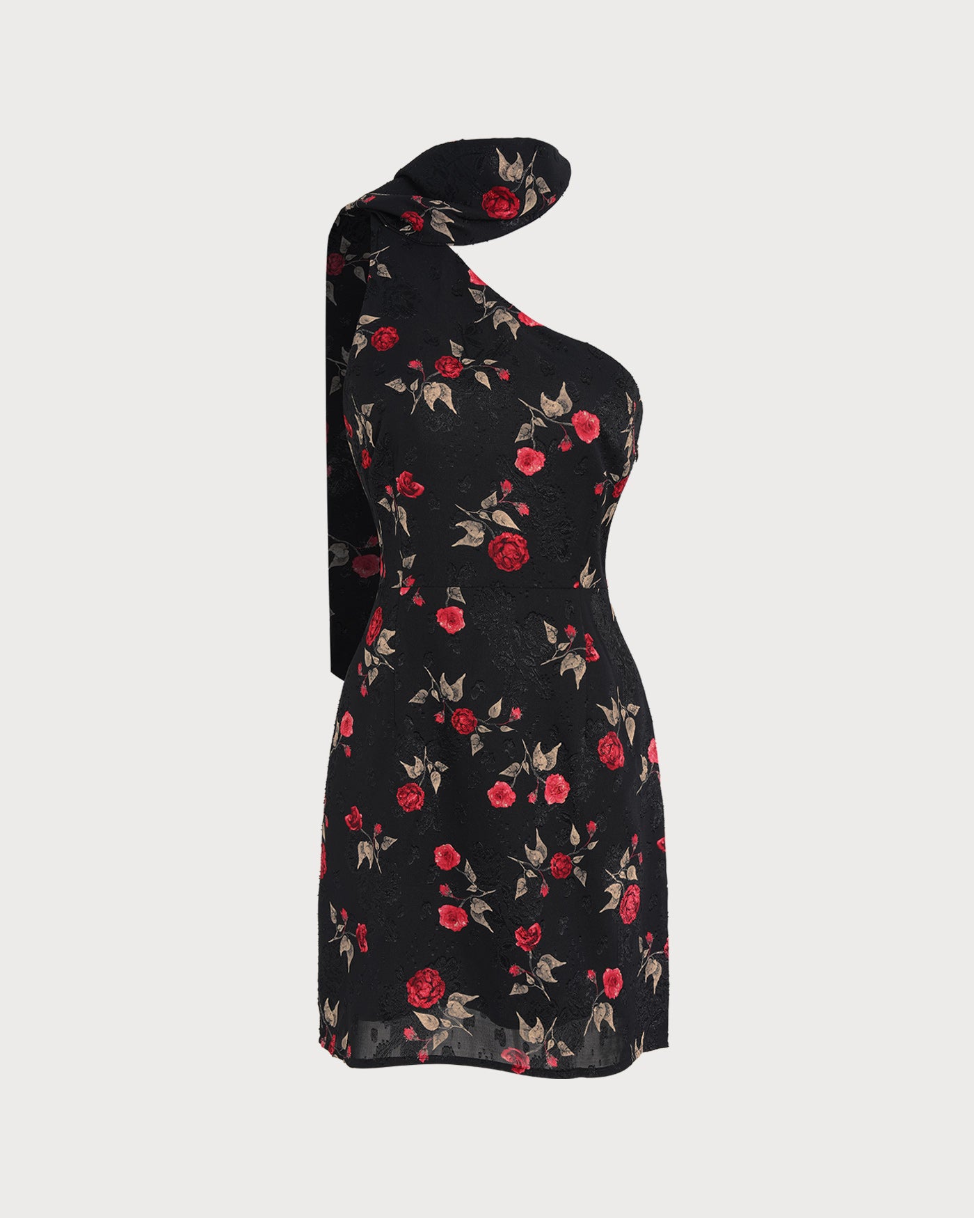 Black Jacquard One Shoulder Mini Dress