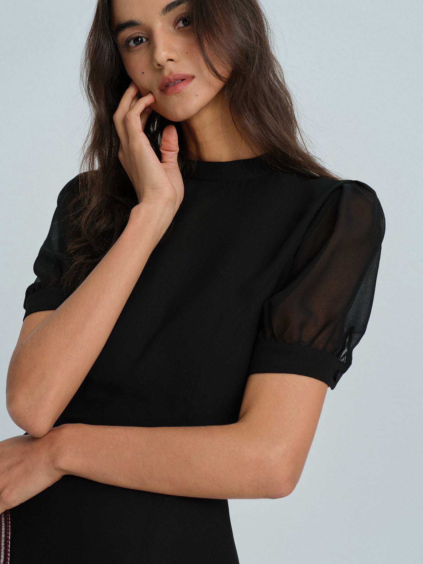 This dress is a wardrobe workhorse. I’ve worn it to a professional event with a blazer and then swapped for statement jewelry and heels for a night out. The black is deep and rich, and the mock neck adds a touch of '60s mod vibe that I absolutely love. True to size and very comfortable for all-day wear.