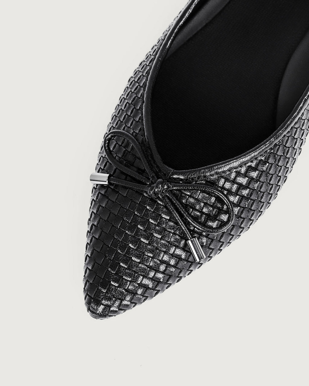 Enfiis Black sheepskin pattern microfiber woven ballet flats.