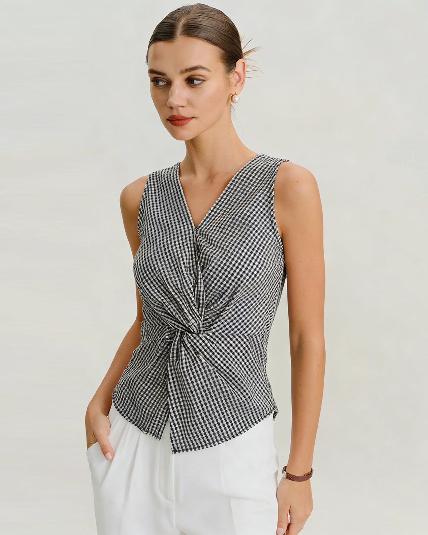 Black V Neck Plaid Tank Top