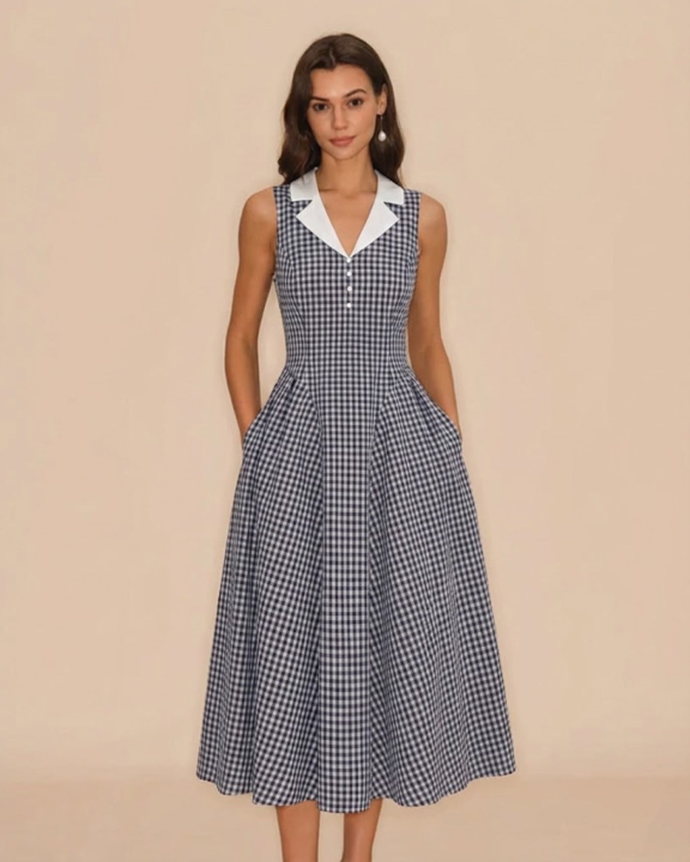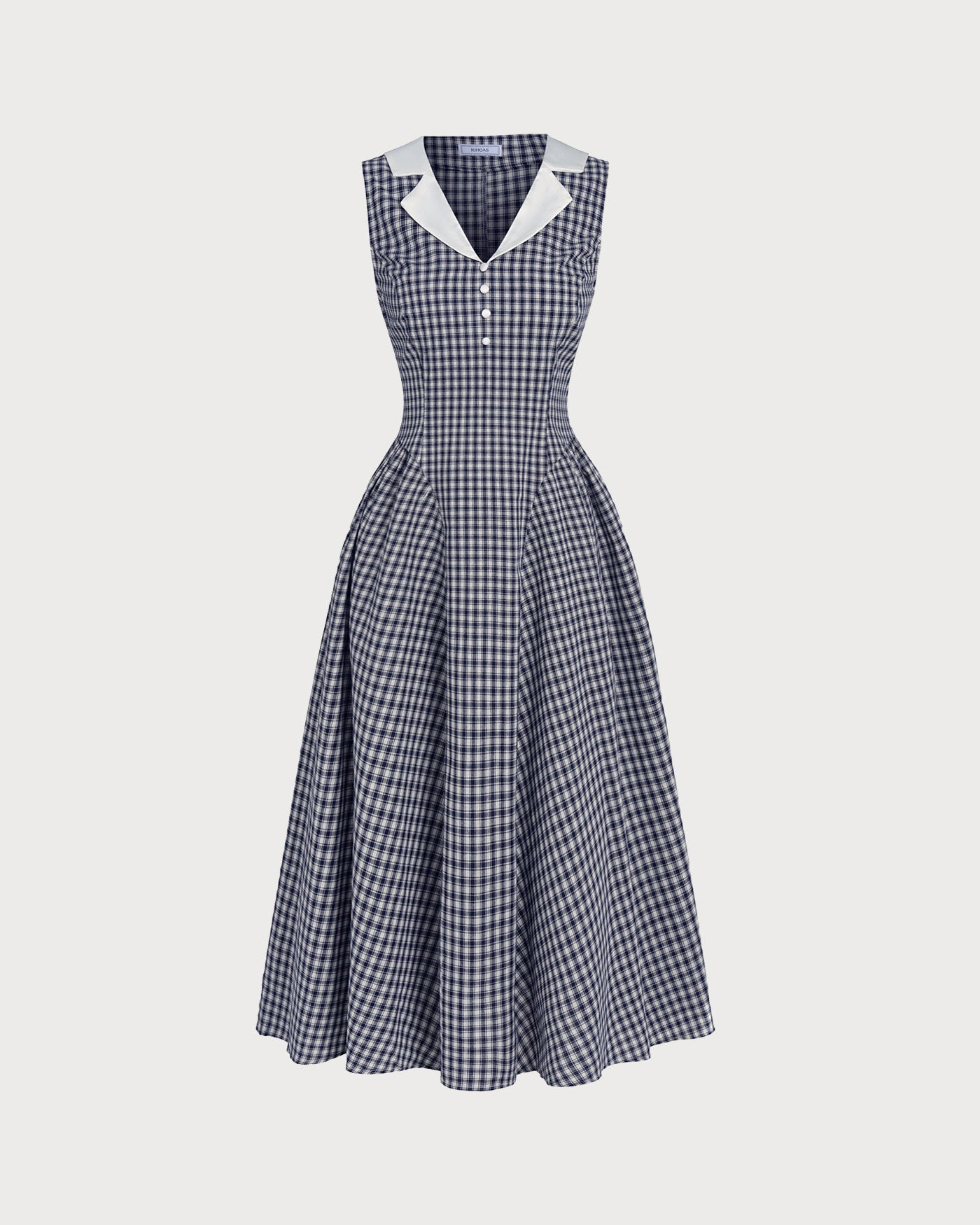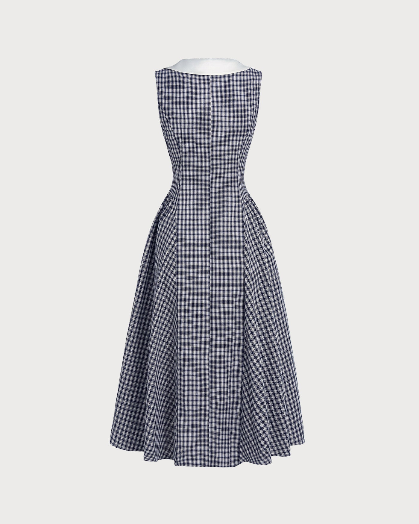 Blue Plaid Cotton Midi Dress