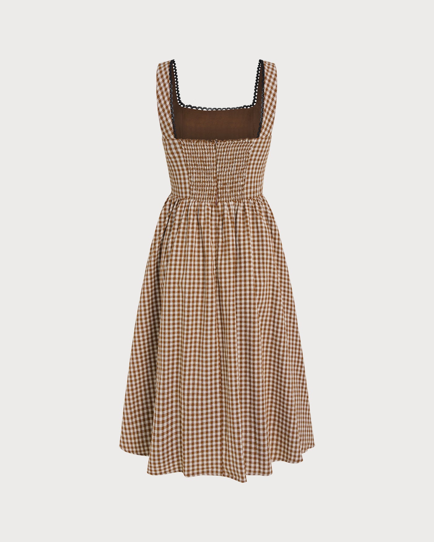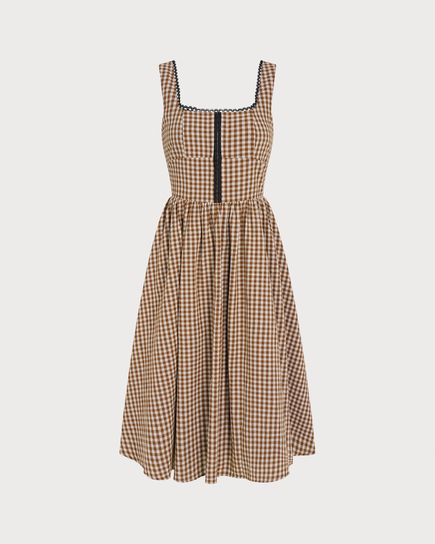 Brown Plaid Sleeveless Midi Dress