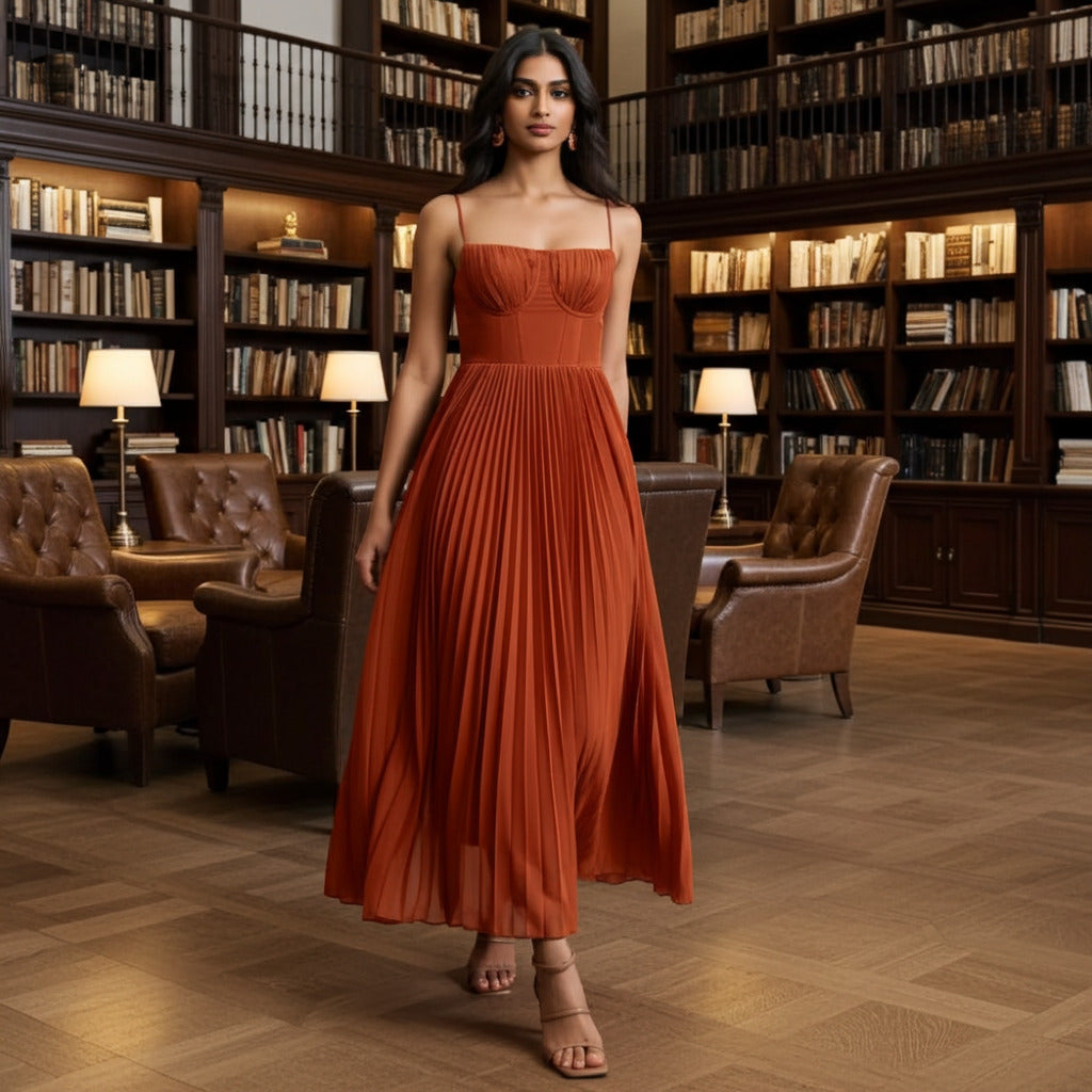 Caramel Sweetheart Neck Flowy Slip Maxi Dress