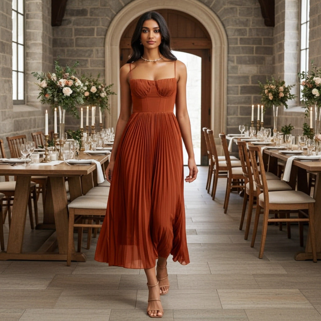The fabric is quite delicate and flows beautifully, and it fits very well, although the colour is a little bright and not caramel. I will certainly keep the dress, as returning it is a bit of a hassle.