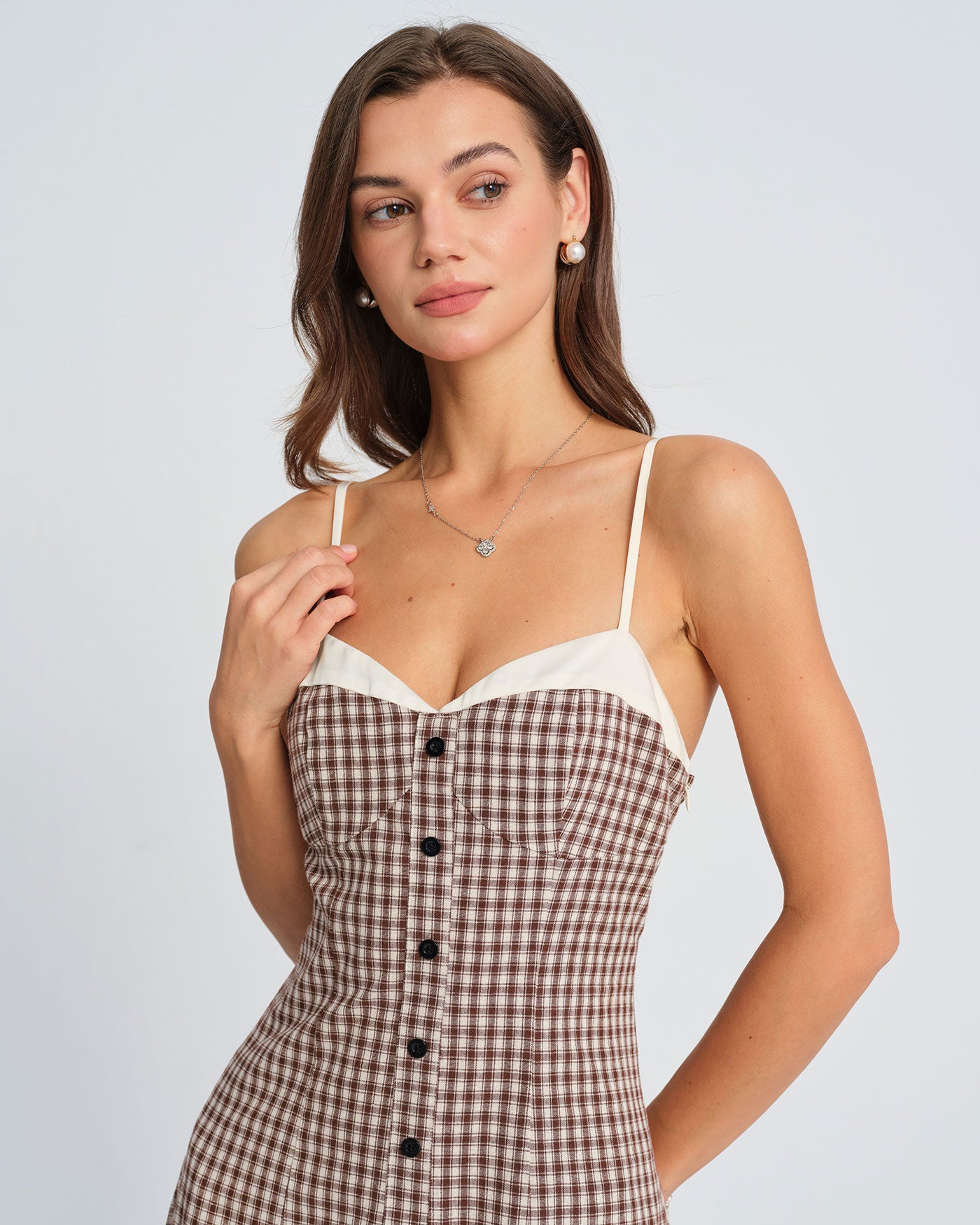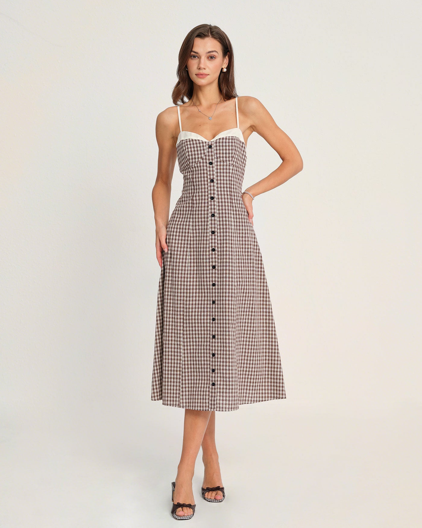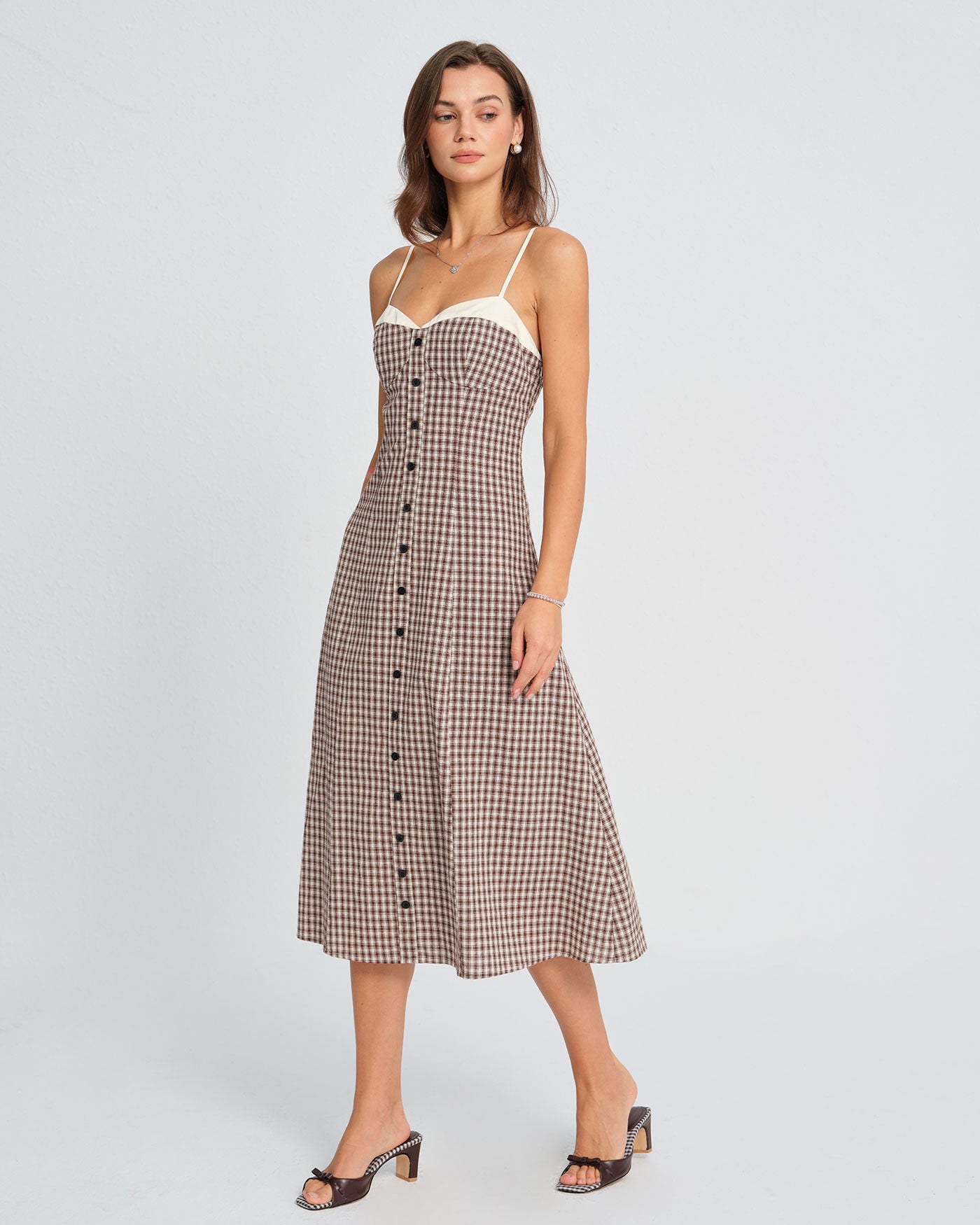 Coffee Plaid Slip Midi Dress