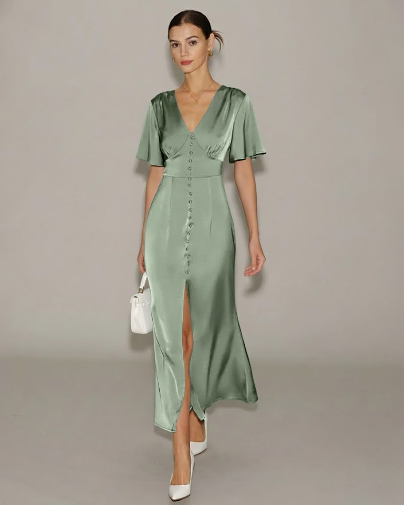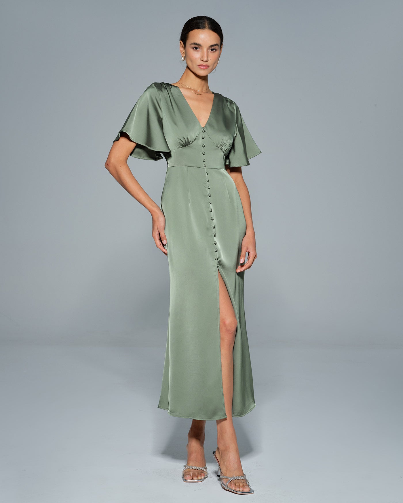 Green Butterfly Sleeve V Neck Maxi Dress