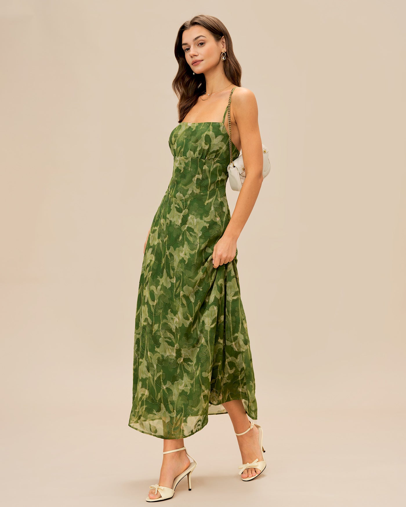 Green Floral X Cross Slip Maxi Dress