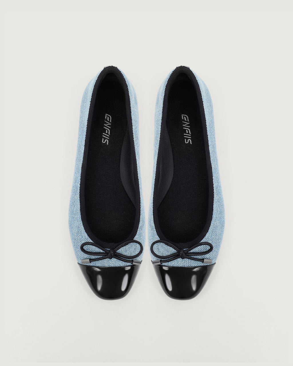 Enfiis Light Blue Washed Denim Cross-head Ballet Flats.