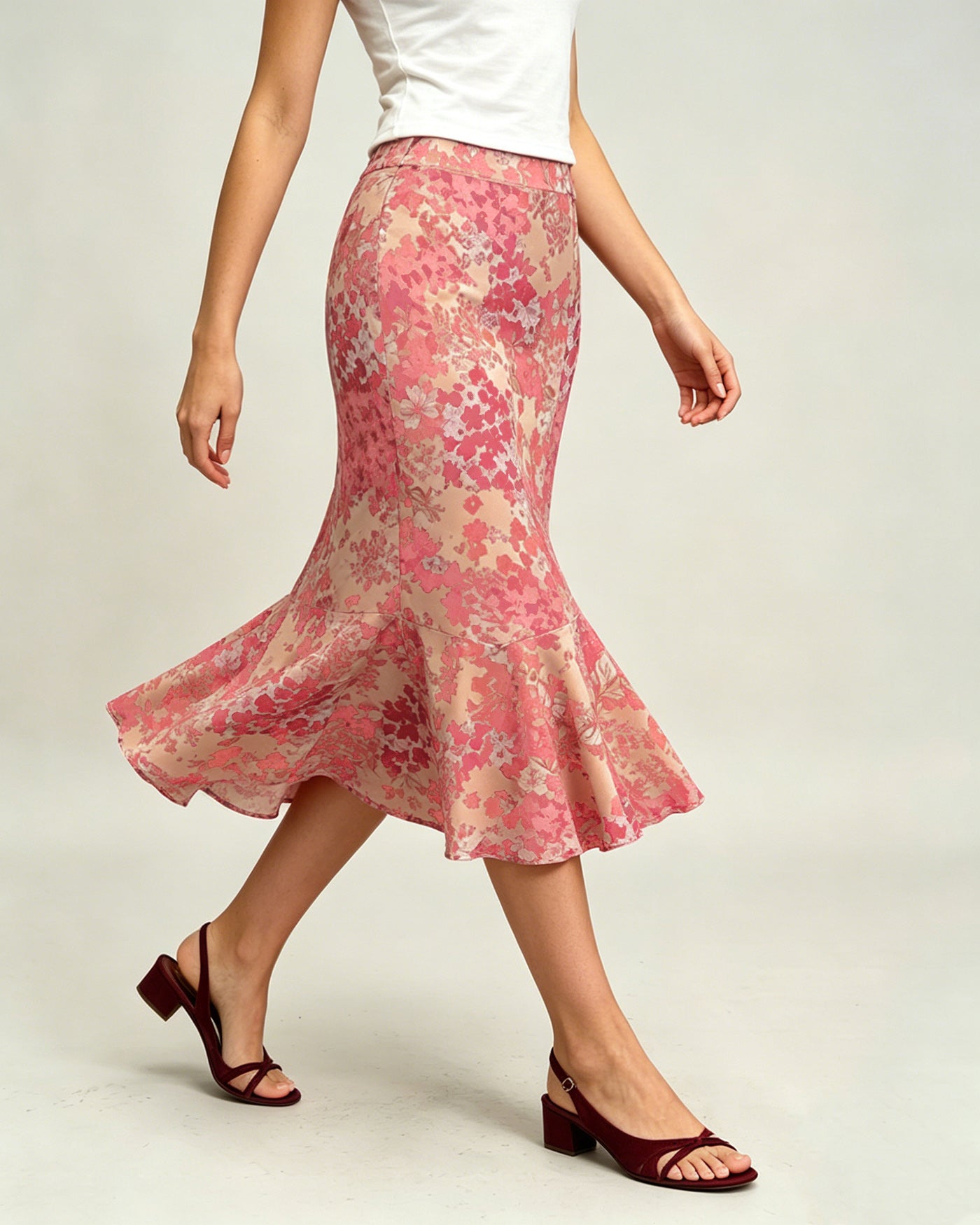 Pink Floral Mermaid Midi Skirt